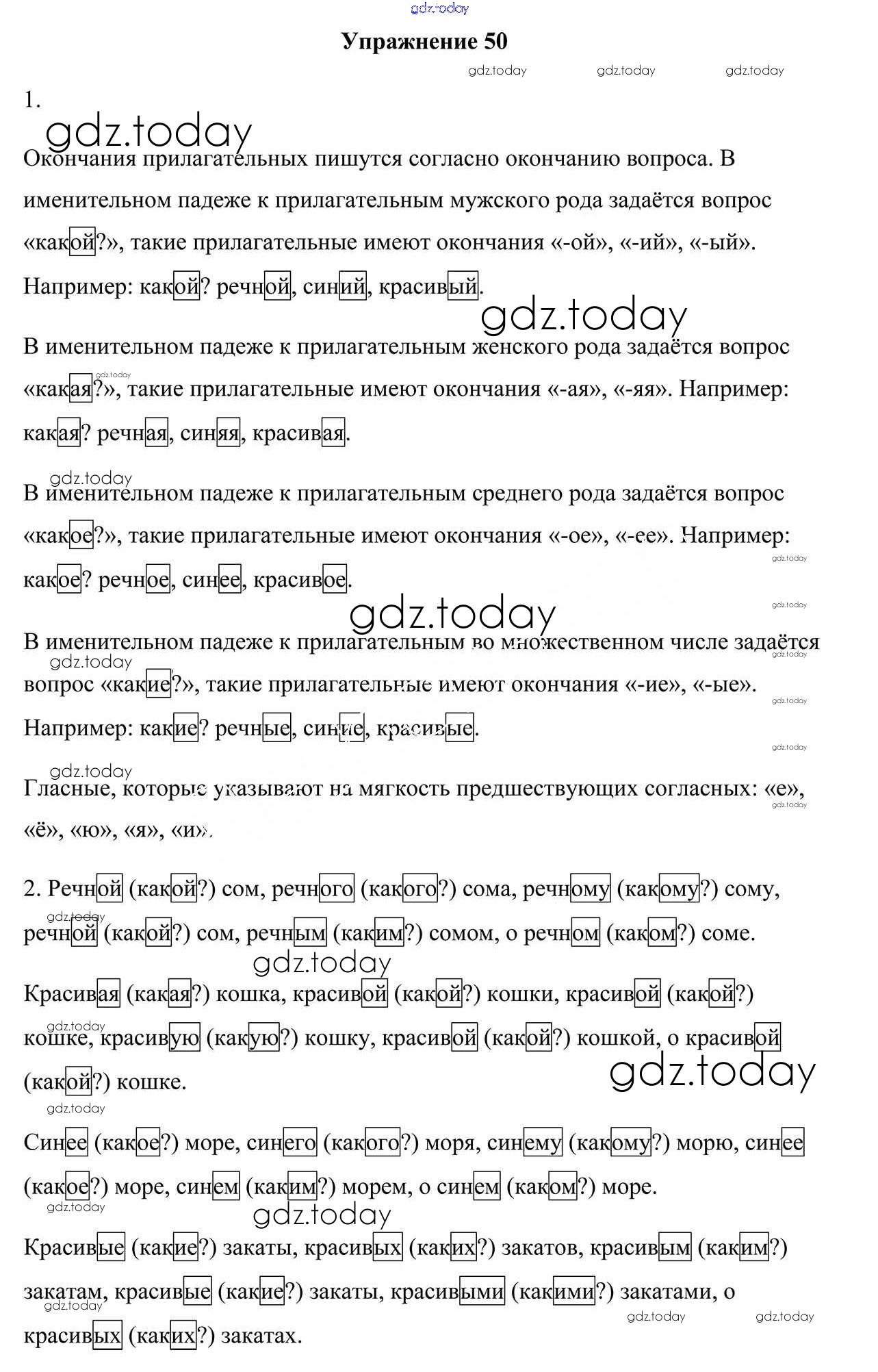 На страницах сайта gdz.today вы найдете учебный и вспомогательный материал, направленный на улучшения знаний школьной программы. ГДЗ - онлайн мир знаний Часть 2. Решение к Заданиям 50 Учебнику по Русскому языку для 5 класса Мурина, Игнатович Национальный институт образования 2014