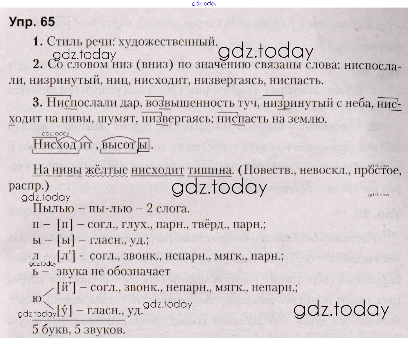На страницах сайта gdz.today вы найдете учебный и вспомогательный материал, направленный на улучшения знаний школьной программы. ГДЗ - онлайн мир знаний Часть 2. Решение к Заданиям 65 Учебнику по Русскому языку для 5 класса Мурина, Игнатович Национальный институт образования 2014