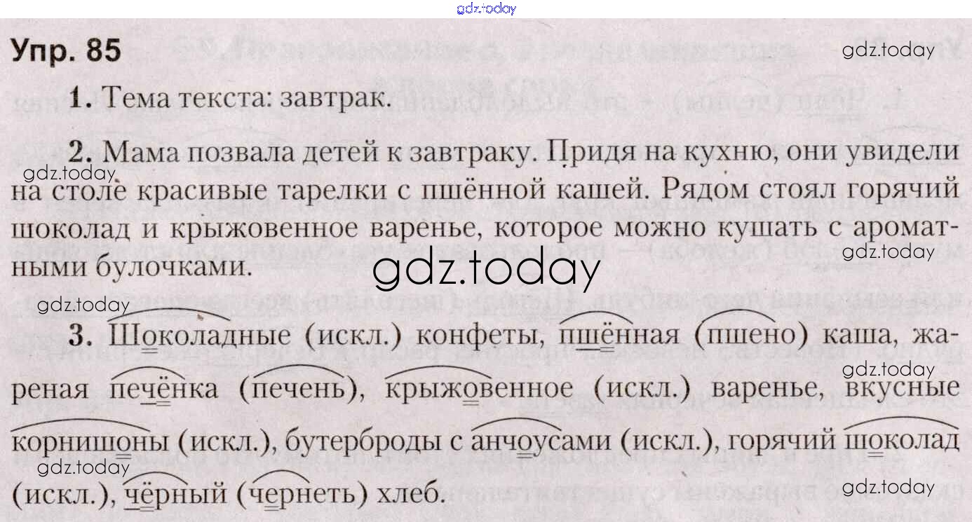 На страницах сайта gdz.today вы найдете учебный и вспомогательный материал, направленный на улучшения знаний школьной программы. ГДЗ - онлайн мир знаний Часть 2. Решение к Заданиям 85 Учебнику по Русскому языку для 5 класса Мурина, Игнатович Национальный институт образования 2014