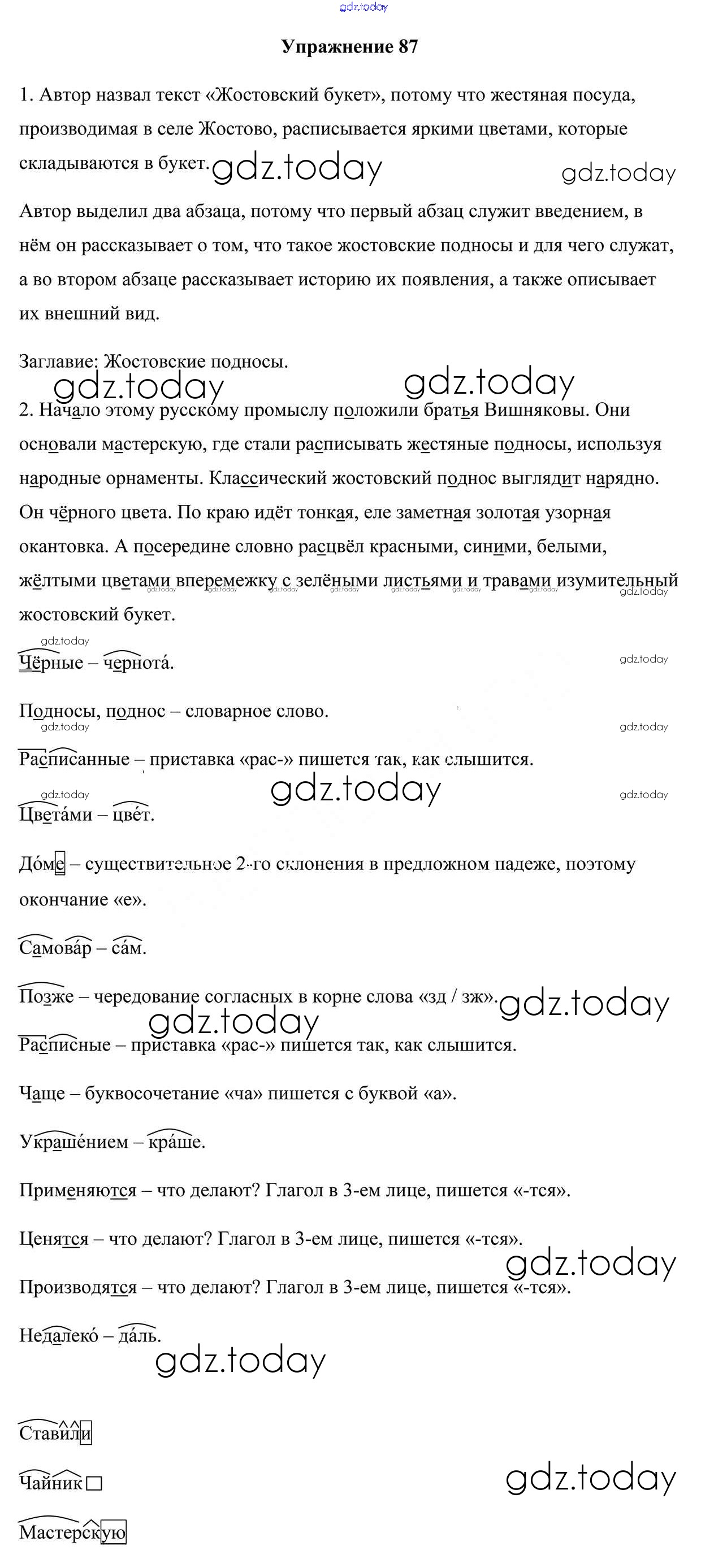 На страницах сайта gdz.today вы найдете учебный и вспомогательный материал, направленный на улучшения знаний школьной программы. ГДЗ - онлайн мир знаний Часть 2. Решение к Заданиям 87 Учебнику по Русскому языку для 5 класса Мурина, Игнатович Национальный институт образования 2014