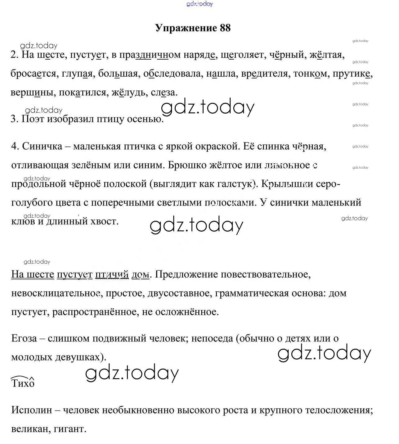 На страницах сайта gdz.today вы найдете учебный и вспомогательный материал, направленный на улучшения знаний школьной программы. ГДЗ - онлайн мир знаний Часть 2. Решение к Заданиям 88 Учебнику по Русскому языку для 5 класса Мурина, Игнатович Национальный институт образования 2014