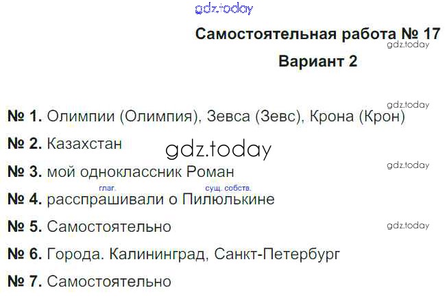 Ответы к СР-17 Решение к самостоятельным работам 2 Рабочей тетради по Русскому языку для 5 класса Гулеватая, Соловьева Национальное образование 2019