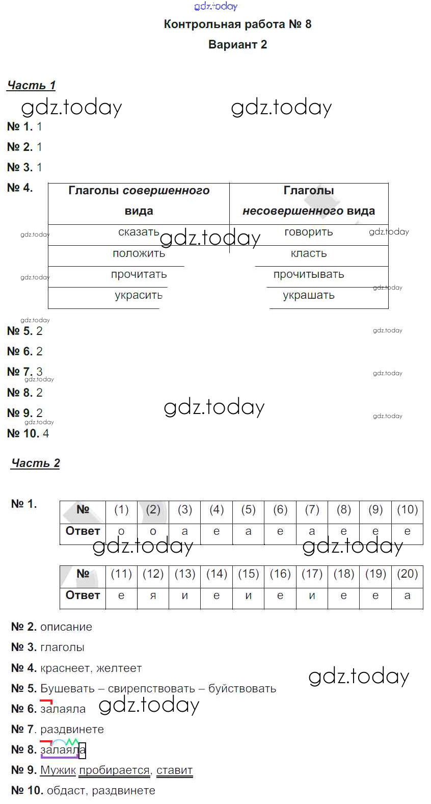 Ответы к КР-8. Варианты Решение к контрольным работам 2 Рабочей тетради по Русскому языку для 5 класса Гулеватая, Соловьева Национальное образование 2019