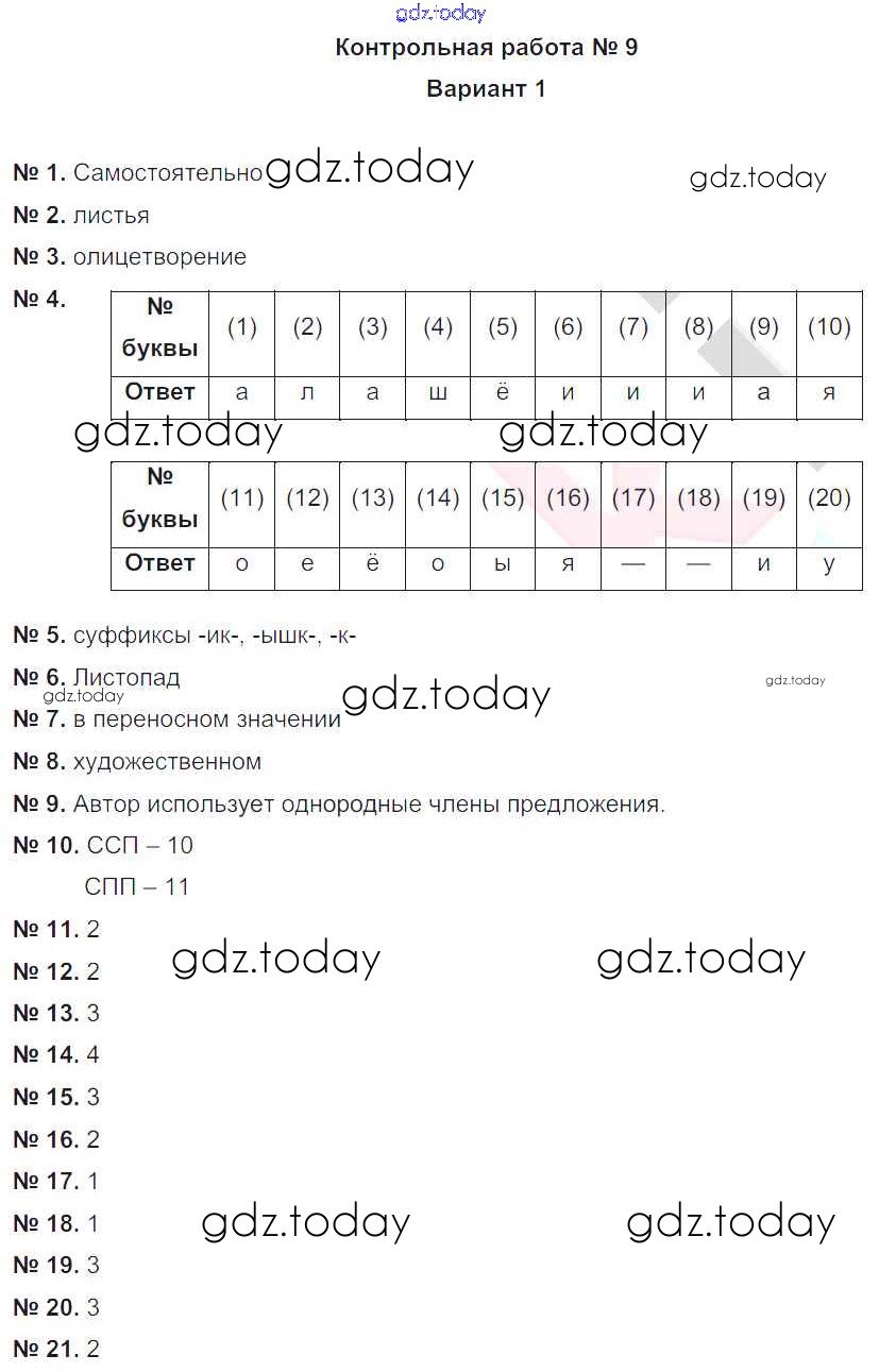 Ответы к КР-9. Варианты Решение к контрольным работам 1 Рабочей тетради по Русскому языку для 5 класса Гулеватая, Соловьева Национальное образование 2019