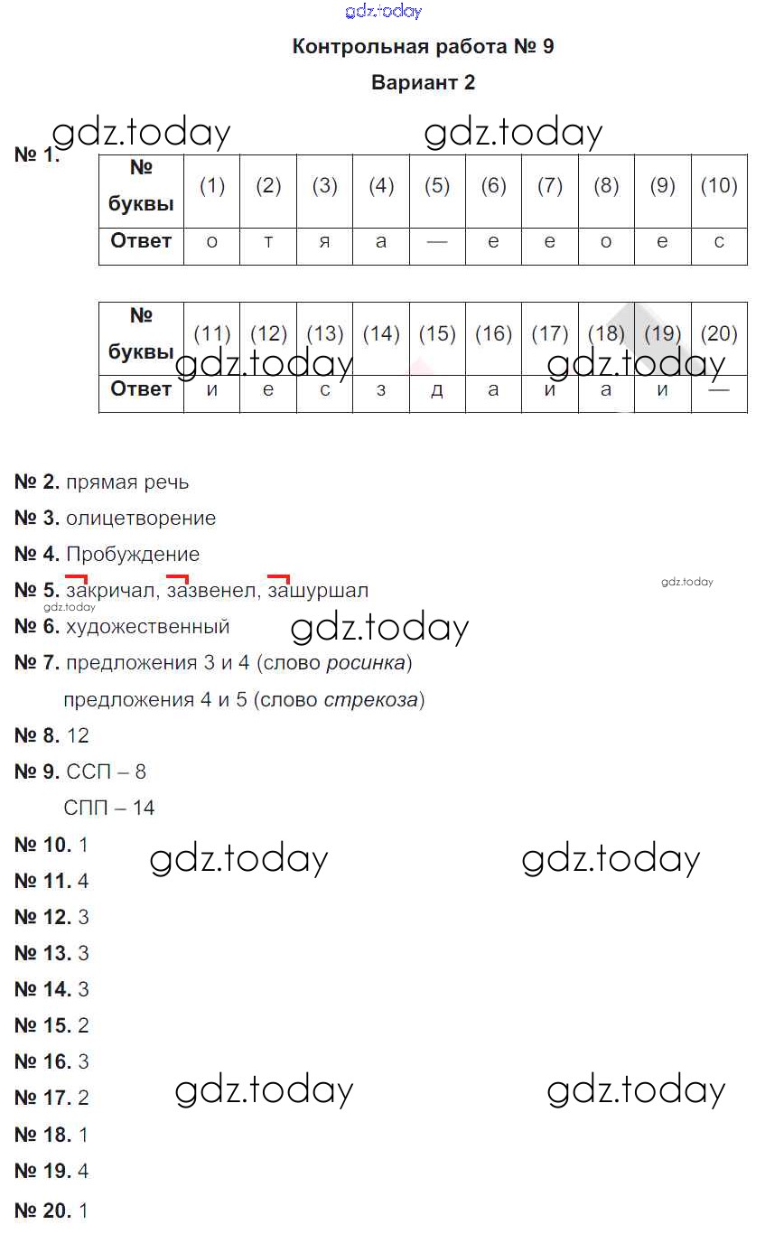 Ответы к КР-9. Варианты Решение к контрольным работам 2 Рабочей тетради по Русскому языку для 5 класса Гулеватая, Соловьева Национальное образование 2019