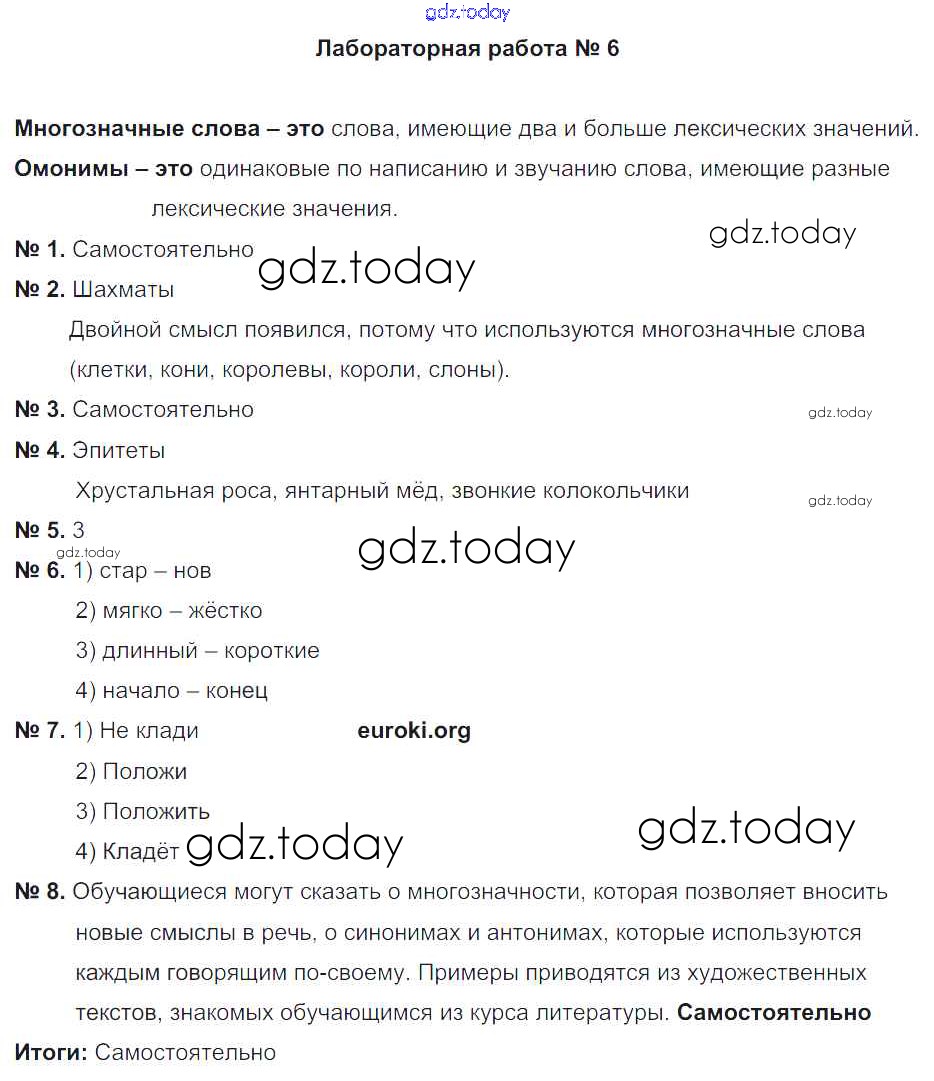 На страницах сайта gdz.today вы найдете учебный и вспомогательный материал, направленный на улучшения знаний школьной программы. ГДЗ - онлайн мир знаний 6 Решение к лабораторным работам 2 Рабочей тетради по Русскому языку для 5 класса Гулеватая, Соловьева Национальное образование 2019