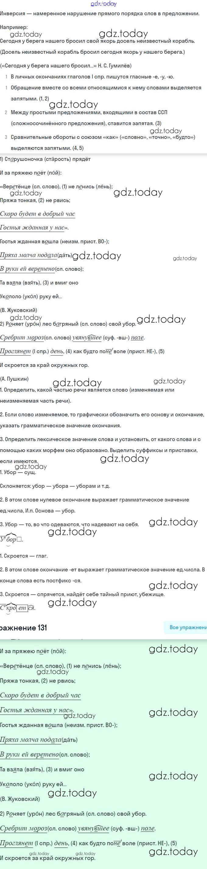 На страницах сайта gdz.today вы найдете учебный и вспомогательный материал, направленный на улучшения знаний школьной программы. ГДЗ - онлайн мир знаний Решение. Часть 1 Упражнения 131 Рабочей тетради по Русскому языку для 5 класса Янченко, Латфуллина Просвещение 2019