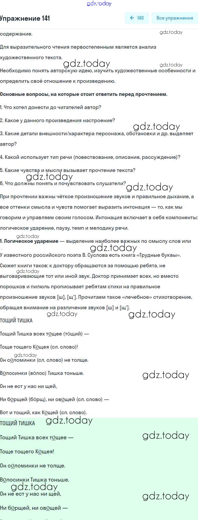 На страницах сайта gdz.today вы найдете учебный и вспомогательный материал, направленный на улучшения знаний школьной программы. ГДЗ - онлайн мир знаний Решение. Часть 1 Упражнения 141 Рабочей тетради по Русскому языку для 5 класса Янченко, Латфуллина Просвещение 2019