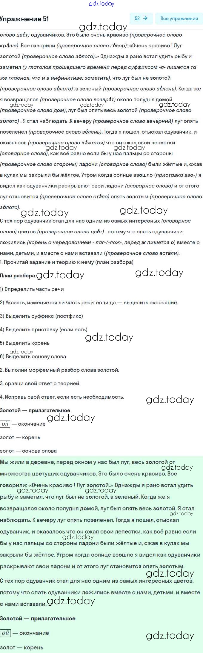 На страницах сайта gdz.today вы найдете учебный и вспомогательный материал, направленный на улучшения знаний школьной программы. ГДЗ - онлайн мир знаний Решение. Часть 1 Упражнения 51 Рабочей тетради по Русскому языку для 5 класса Янченко, Латфуллина Просвещение 2019