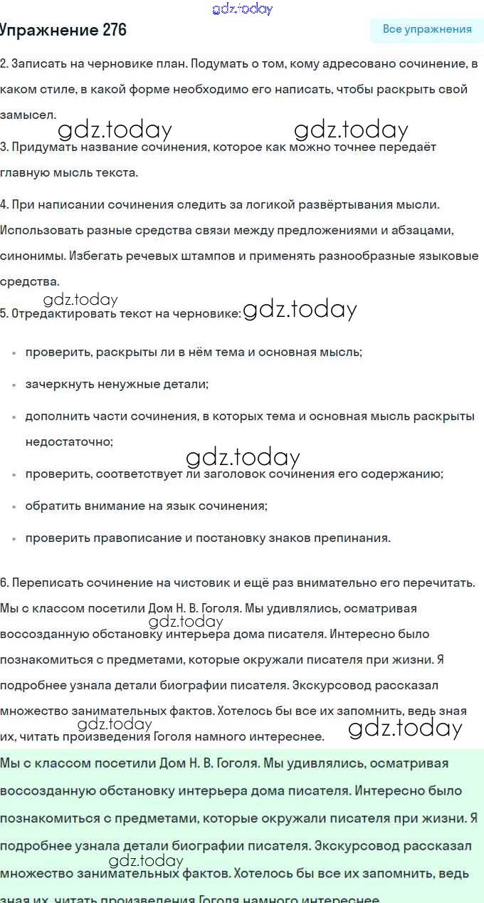 На страницах сайта gdz.today вы найдете учебный и вспомогательный материал, направленный на улучшения знаний школьной программы. ГДЗ - онлайн мир знаний Решение. Часть 2 Упражнения 276 Рабочей тетради по Русскому языку для 5 класса Янченко, Латфуллина Просвещение 2019