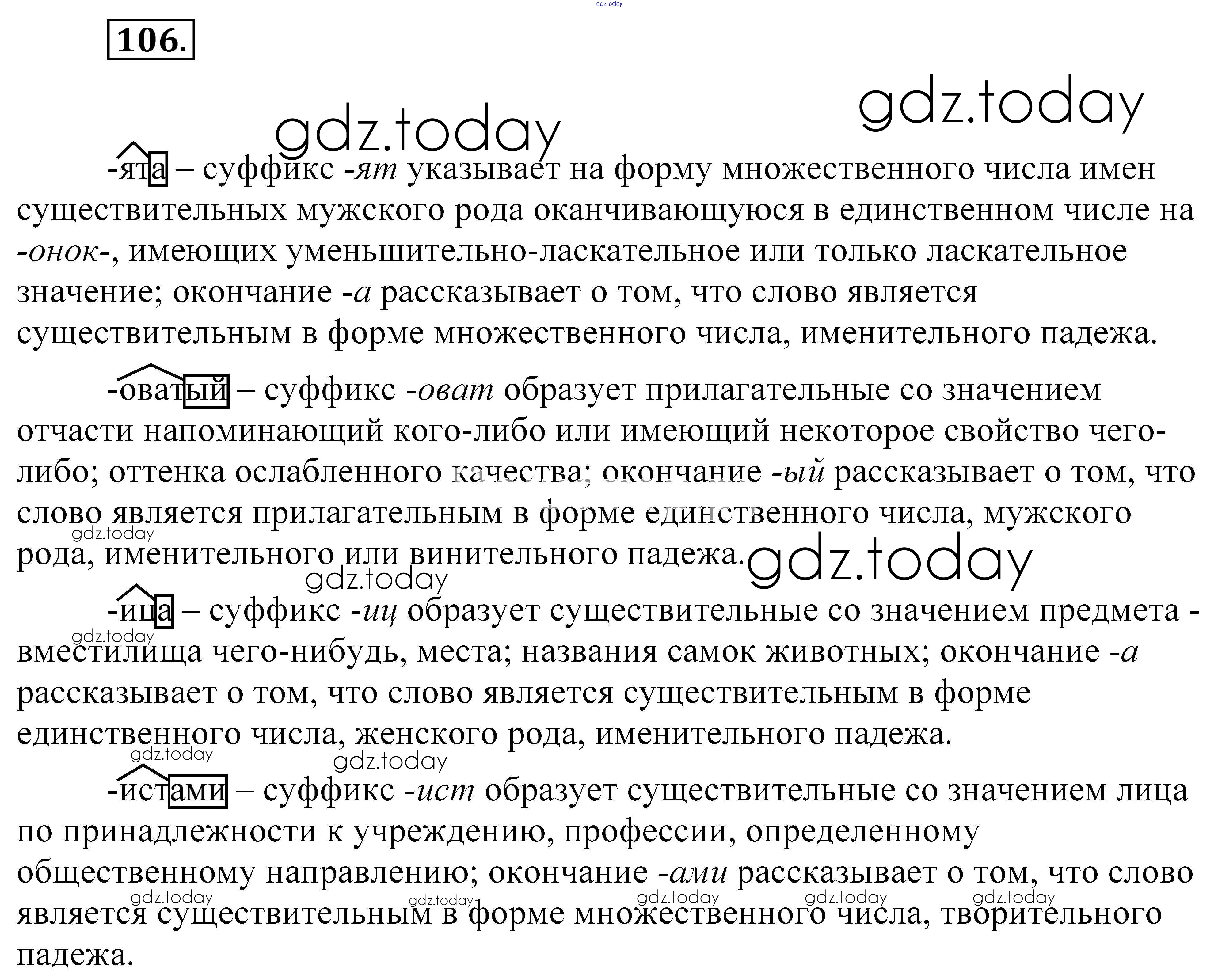 На страницах сайта gdz.today вы найдете учебный и вспомогательный материал, направленный на улучшения знаний школьной программы. ГДЗ - онлайн мир знаний Упражнения (решение) 106 Учебнику по Русскому языку для 5 класса Разумовская, Львова Дрофа, Дрофа 2014, 2020