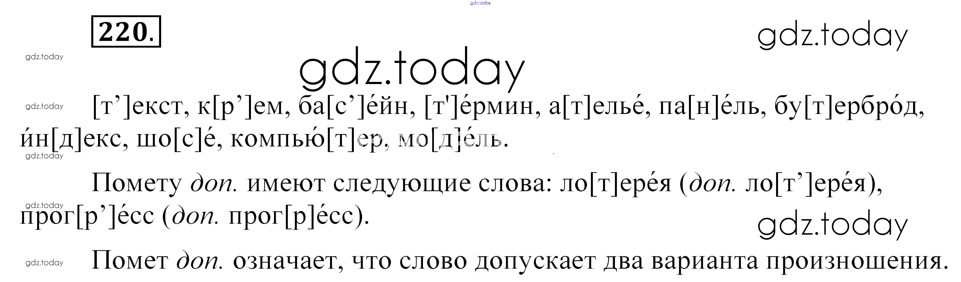 На страницах сайта gdz.today вы найдете учебный и вспомогательный материал, направленный на улучшения знаний школьной программы. ГДЗ - онлайн мир знаний Упражнения (решение) 220 Учебнику по Русскому языку для 5 класса Разумовская, Львова Дрофа, Дрофа 2014, 2020