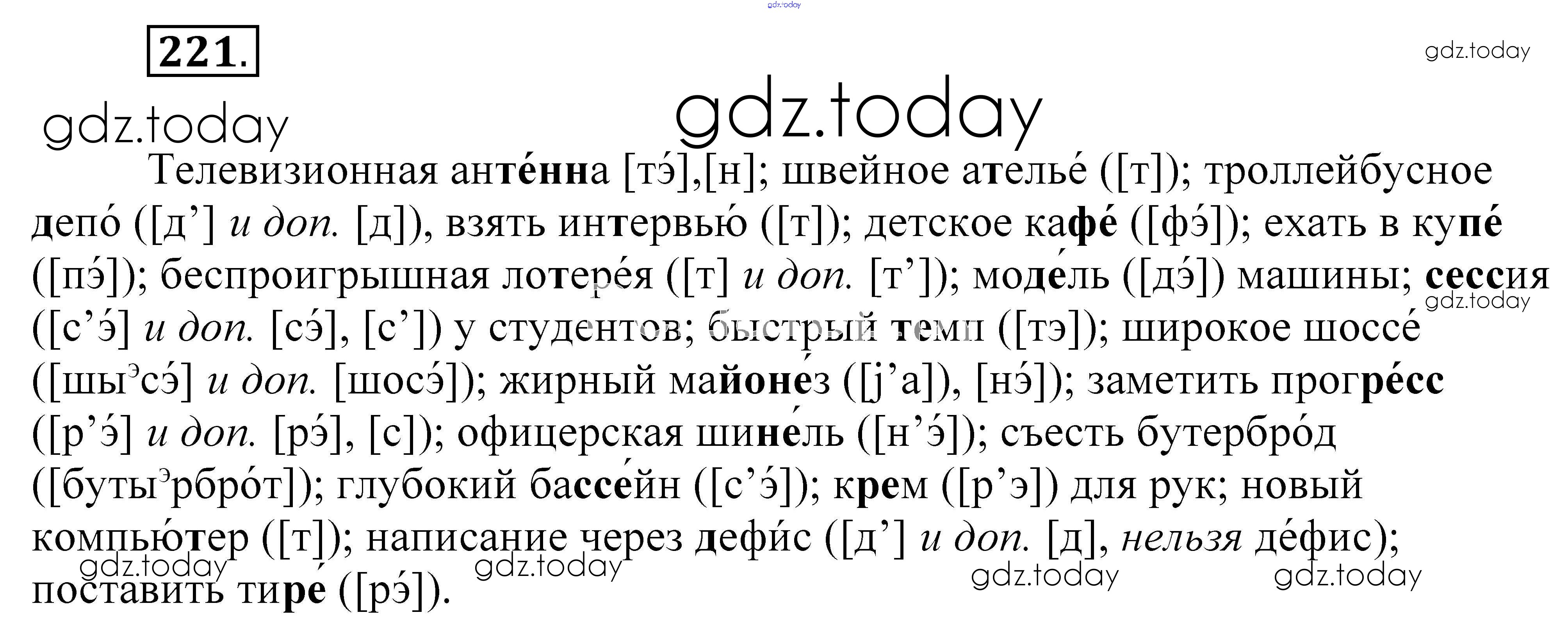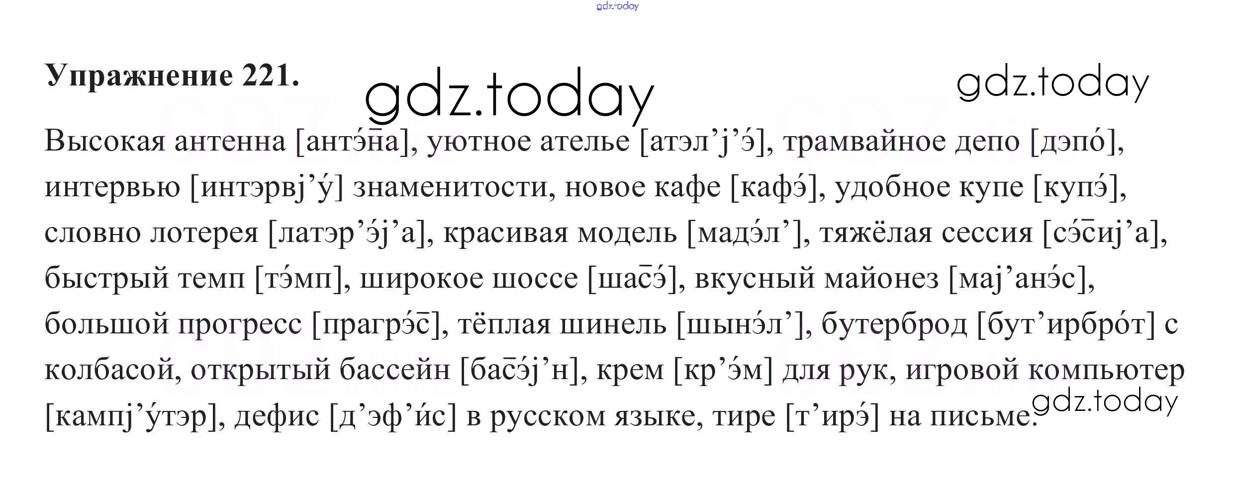 На страницах сайта gdz.today вы найдете учебный и вспомогательный материал, направленный на улучшения знаний школьной программы. ГДЗ - онлайн мир знаний Упражнения (решение) 221 Учебнику по Русскому языку для 5 класса Разумовская, Львова Дрофа, Дрофа 2014, 2020