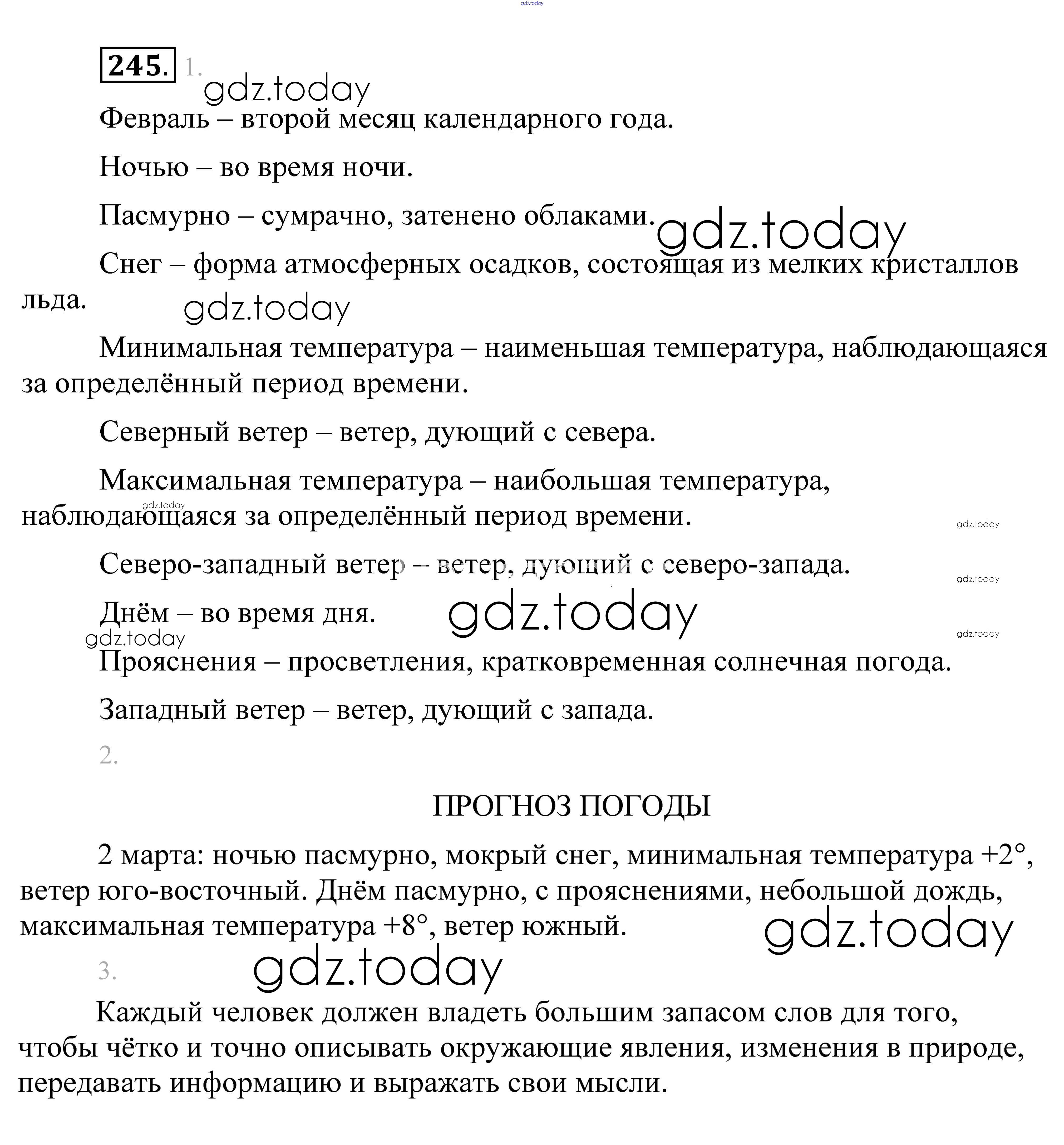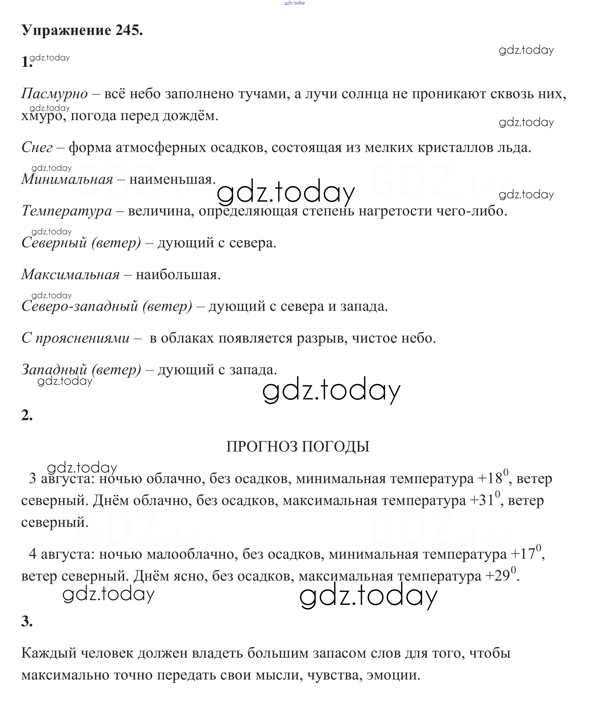 На страницах сайта gdz.today вы найдете учебный и вспомогательный материал, направленный на улучшения знаний школьной программы. ГДЗ - онлайн мир знаний Упражнения (решение) 245 Учебнику по Русскому языку для 5 класса Разумовская, Львова Дрофа, Дрофа 2014, 2020