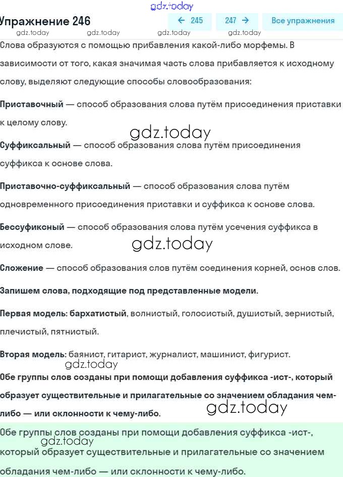 На страницах сайта gdz.today вы найдете учебный и вспомогательный материал, направленный на улучшения знаний школьной программы. ГДЗ - онлайн мир знаний Упражнения (решение) 246 Учебнику по Русскому языку для 5 класса Разумовская, Львова Дрофа, Дрофа 2014, 2020