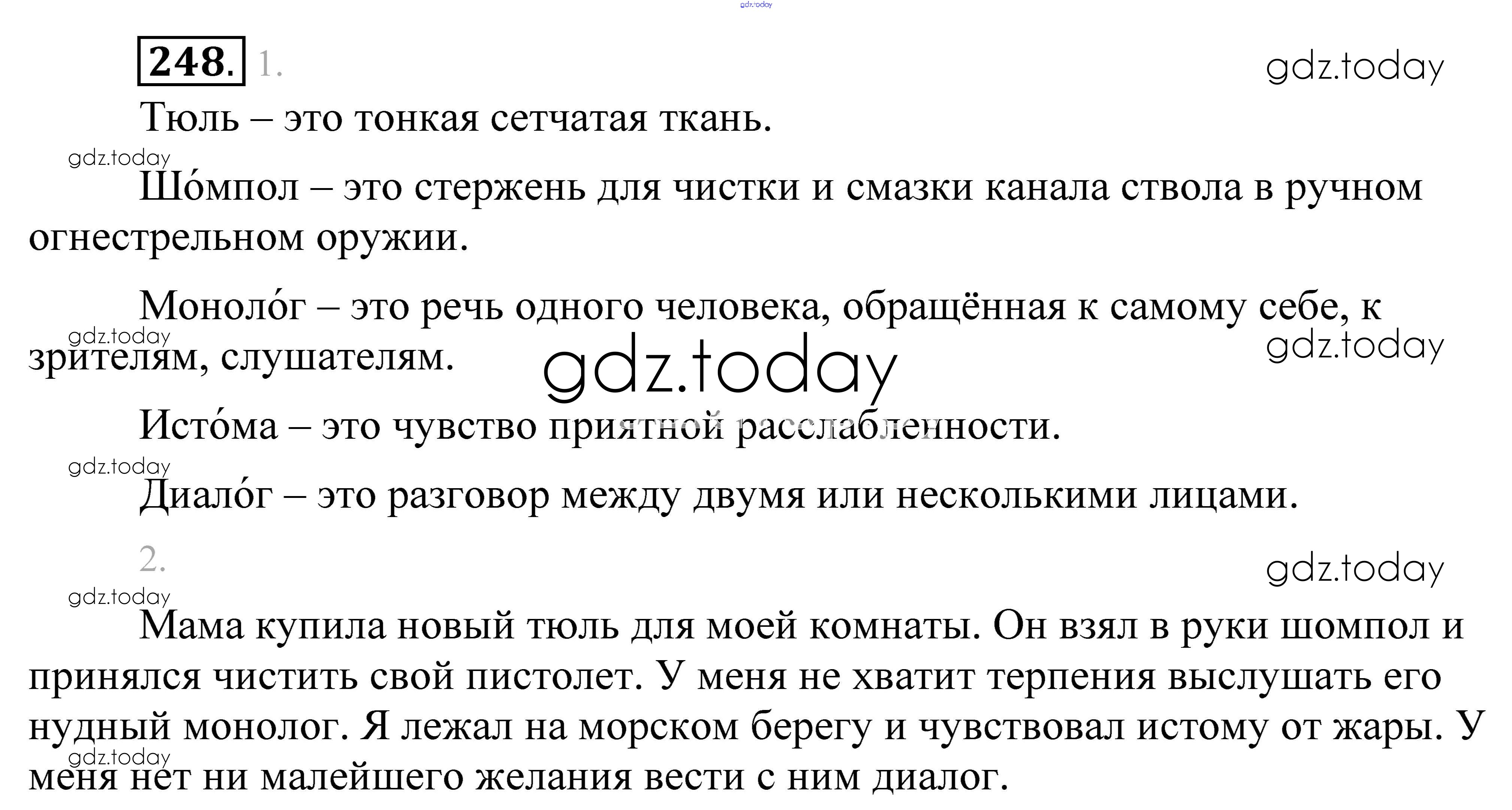 На страницах сайта gdz.today вы найдете учебный и вспомогательный материал, направленный на улучшения знаний школьной программы. ГДЗ - онлайн мир знаний Упражнения (решение) 248 Учебнику по Русскому языку для 5 класса Разумовская, Львова Дрофа, Дрофа 2014, 2020