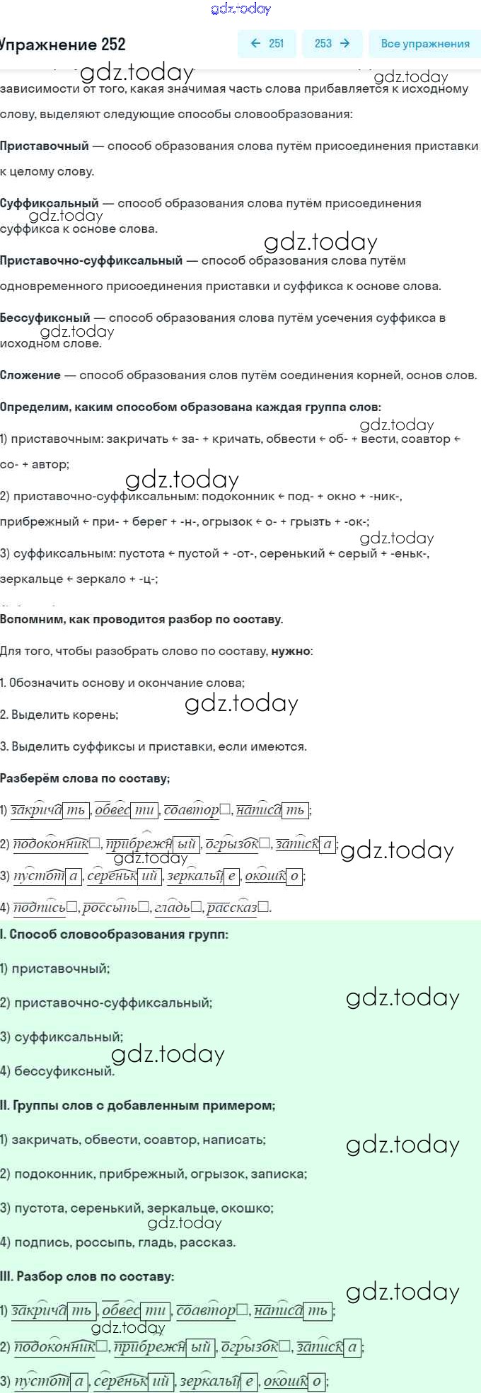 На страницах сайта gdz.today вы найдете учебный и вспомогательный материал, направленный на улучшения знаний школьной программы. ГДЗ - онлайн мир знаний Упражнения (решение) 252 Учебнику по Русскому языку для 5 класса Разумовская, Львова Дрофа, Дрофа 2014, 2020