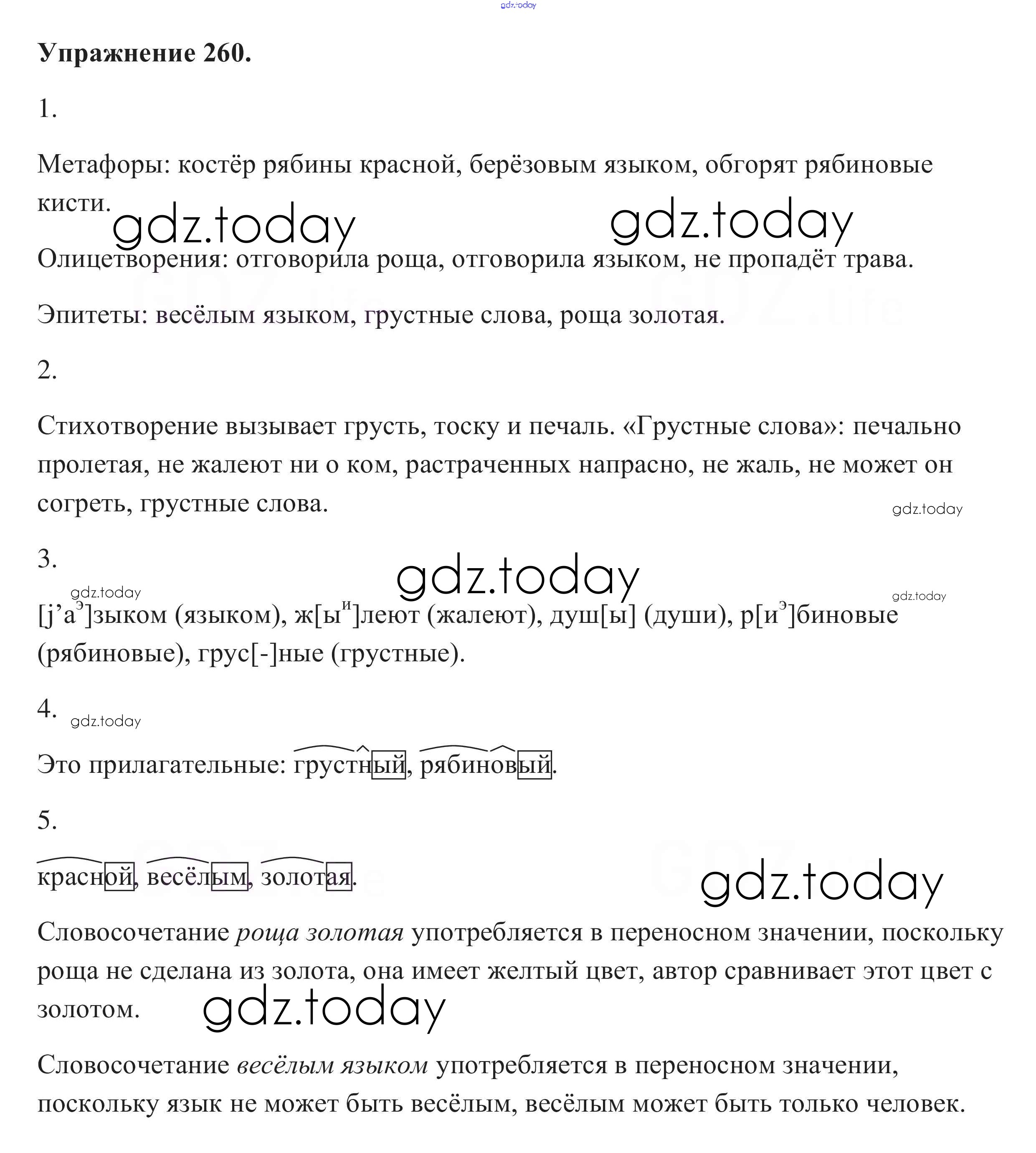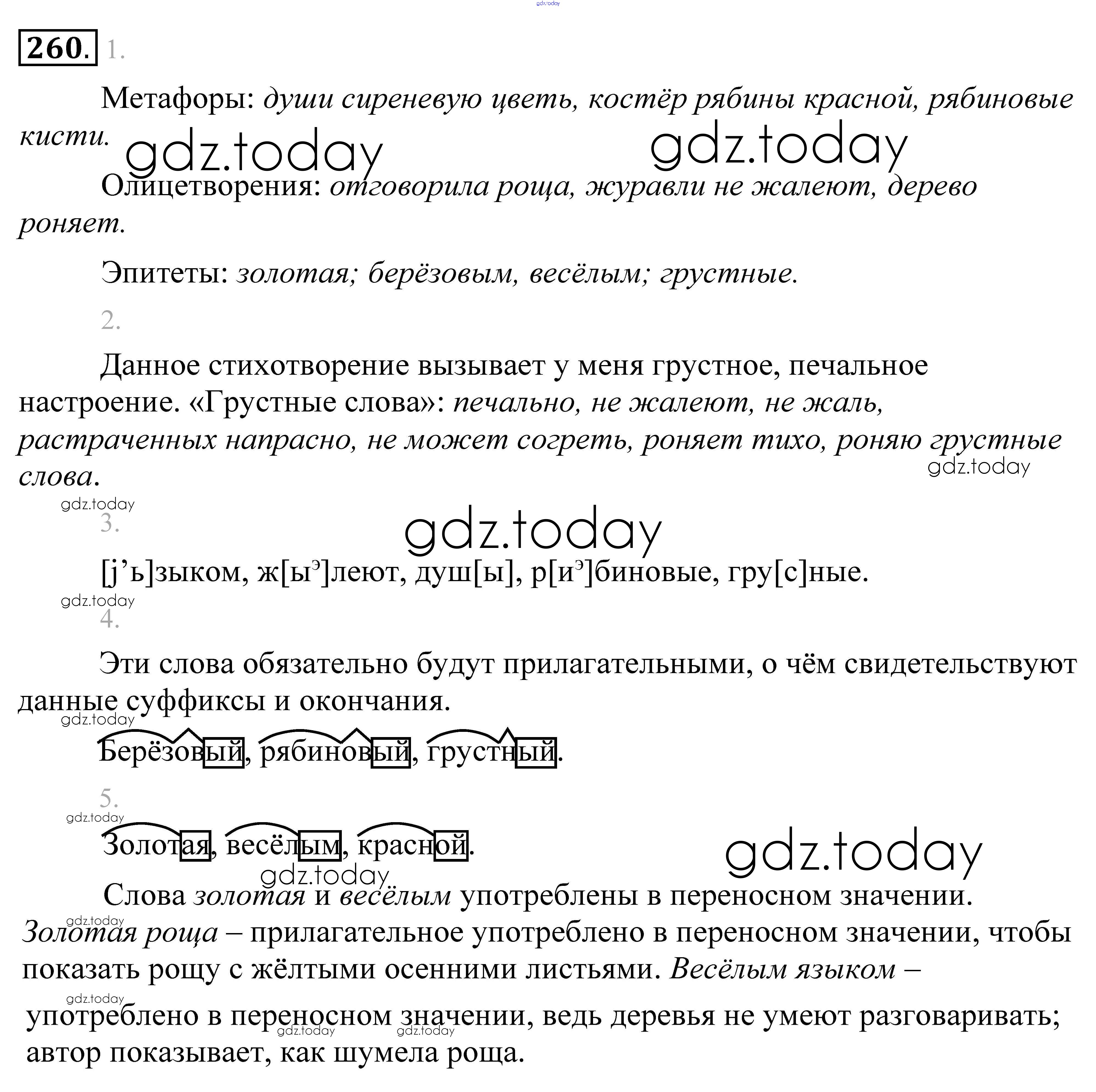 На страницах сайта gdz.today вы найдете учебный и вспомогательный материал, направленный на улучшения знаний школьной программы. ГДЗ - онлайн мир знаний Упражнения (решение) 260 Учебнику по Русскому языку для 5 класса Разумовская, Львова Дрофа, Дрофа 2014, 2020