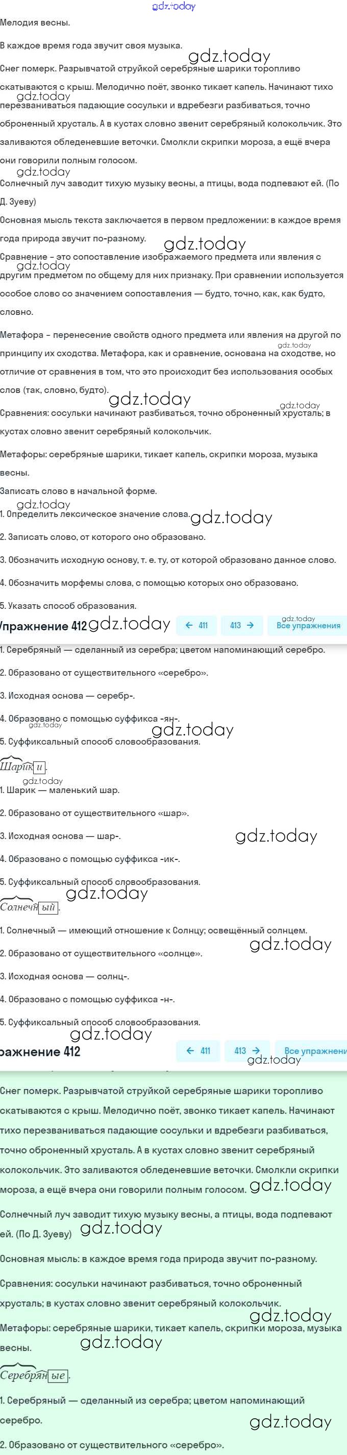 На страницах сайта gdz.today вы найдете учебный и вспомогательный материал, направленный на улучшения знаний школьной программы. ГДЗ - онлайн мир знаний Упражнения (решение) 412 Учебнику по Русскому языку для 5 класса Разумовская, Львова Дрофа, Дрофа 2014, 2020
