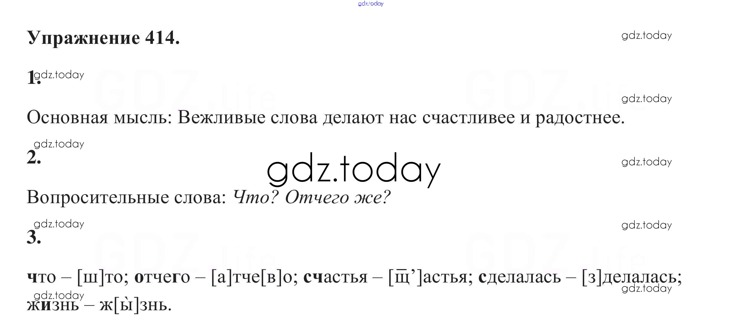 На страницах сайта gdz.today вы найдете учебный и вспомогательный материал, направленный на улучшения знаний школьной программы. ГДЗ - онлайн мир знаний Упражнения (решение) 414 Учебнику по Русскому языку для 5 класса Разумовская, Львова Дрофа, Дрофа 2014, 2020