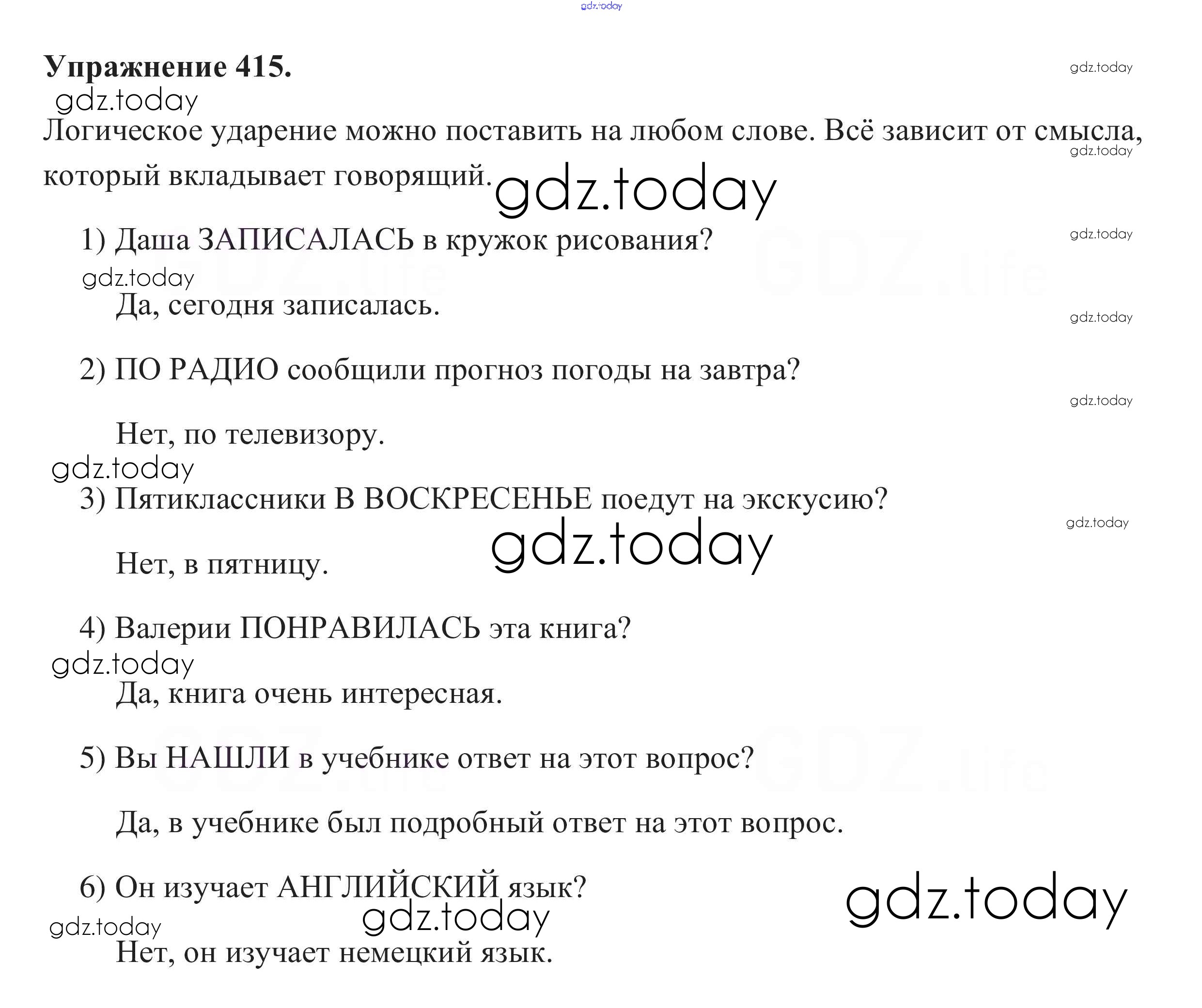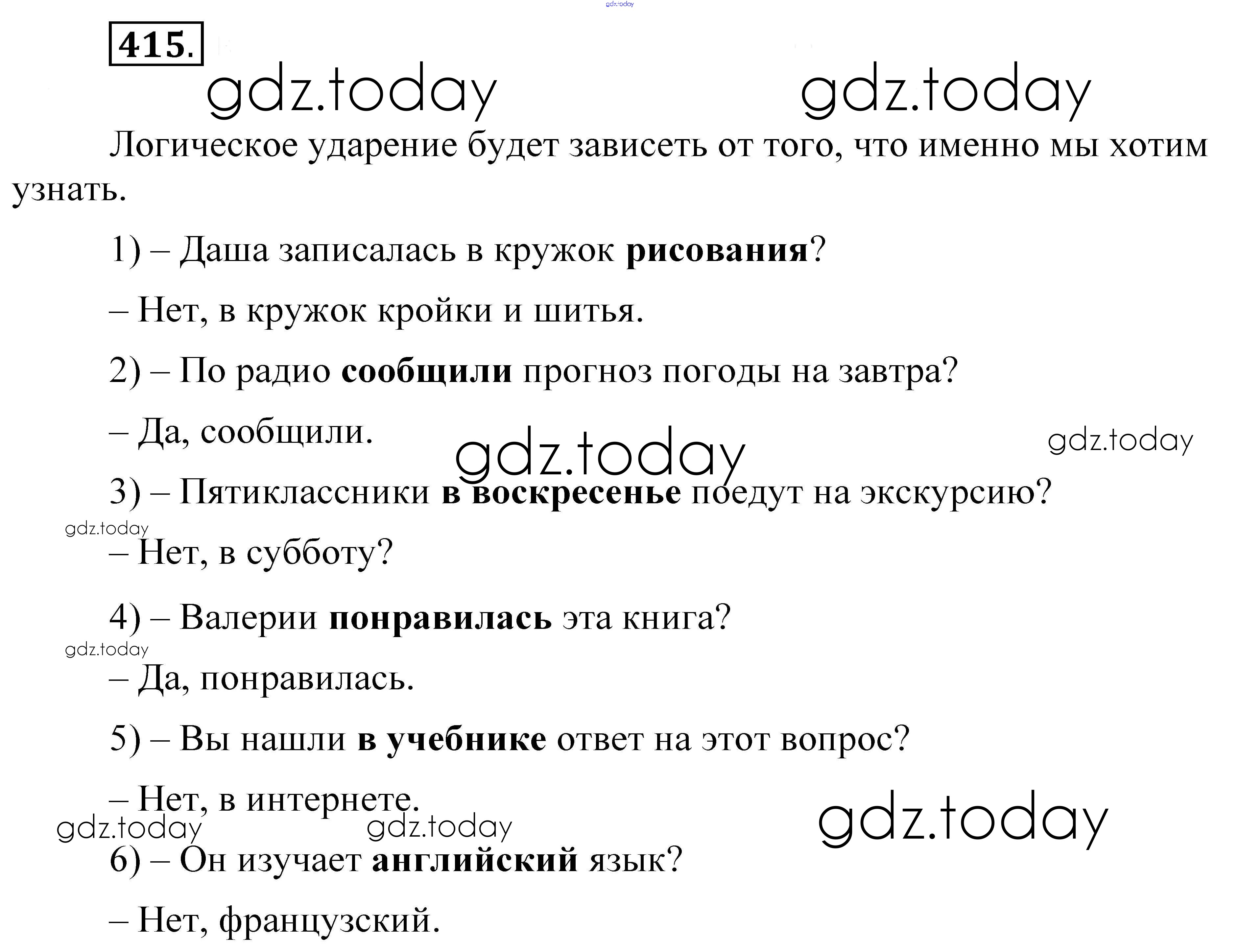 На страницах сайта gdz.today вы найдете учебный и вспомогательный материал, направленный на улучшения знаний школьной программы. ГДЗ - онлайн мир знаний Упражнения (решение) 415 Учебнику по Русскому языку для 5 класса Разумовская, Львова Дрофа, Дрофа 2014, 2020