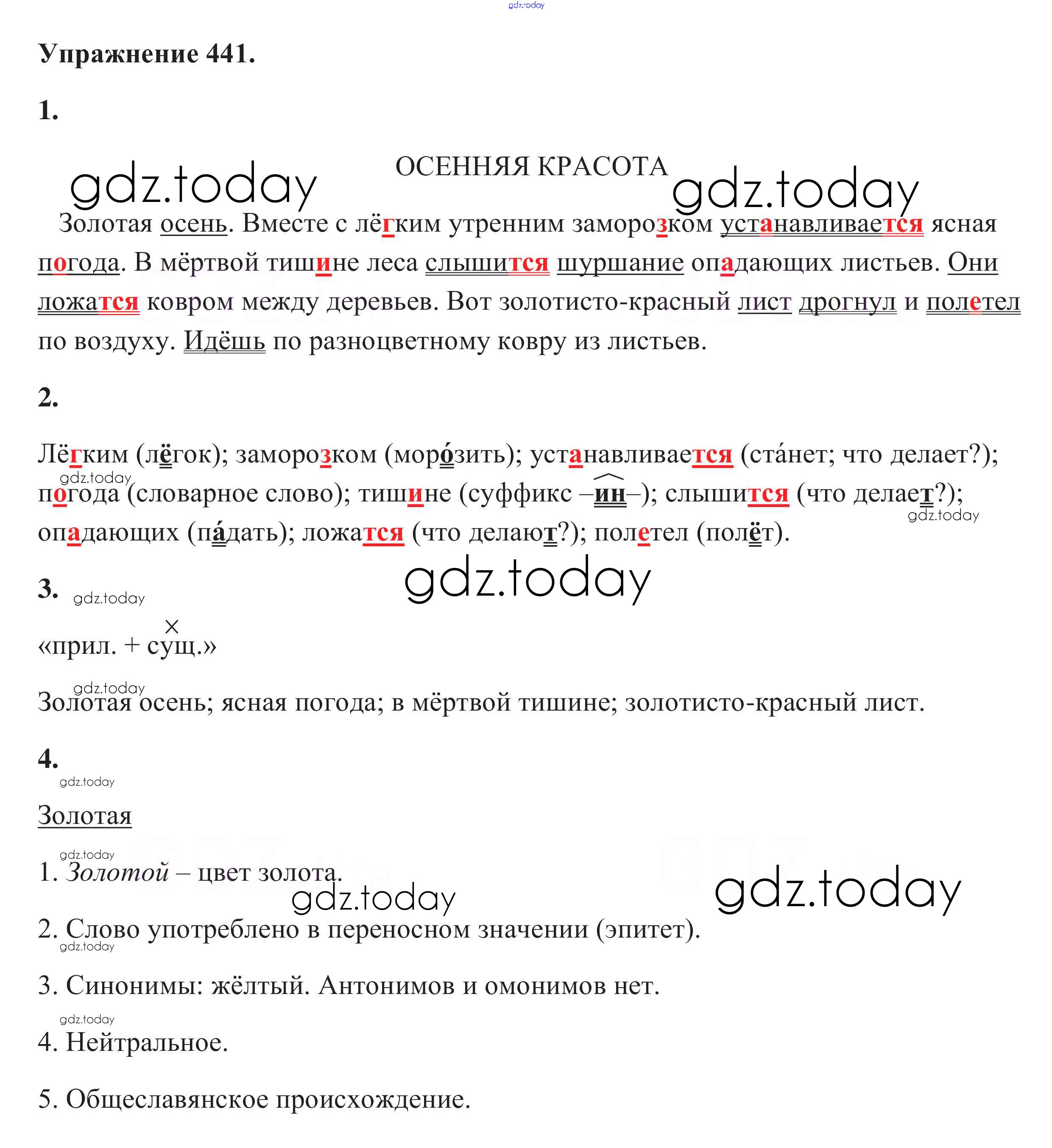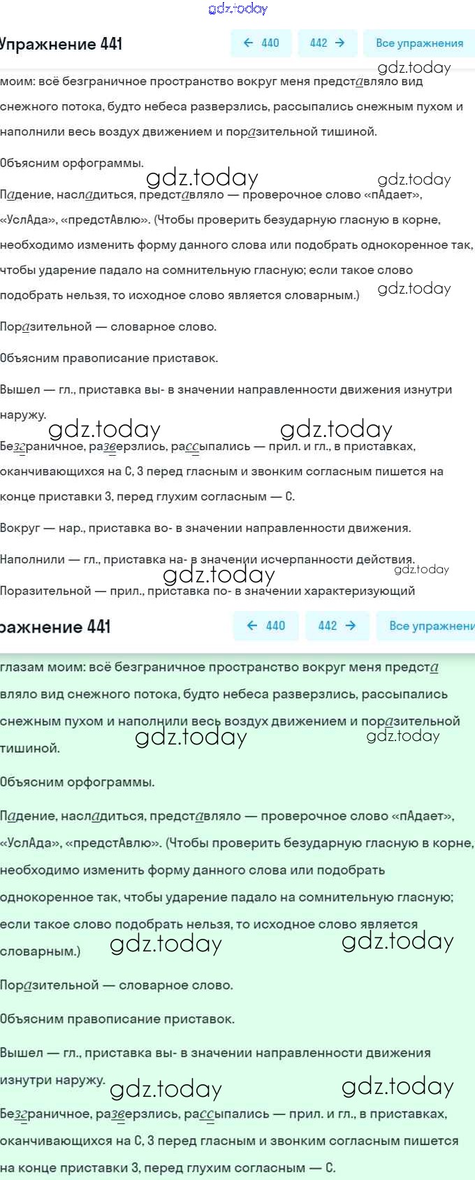 На страницах сайта gdz.today вы найдете учебный и вспомогательный материал, направленный на улучшения знаний школьной программы. ГДЗ - онлайн мир знаний Упражнения (решение) 441 Учебнику по Русскому языку для 5 класса Разумовская, Львова Дрофа, Дрофа 2014, 2020