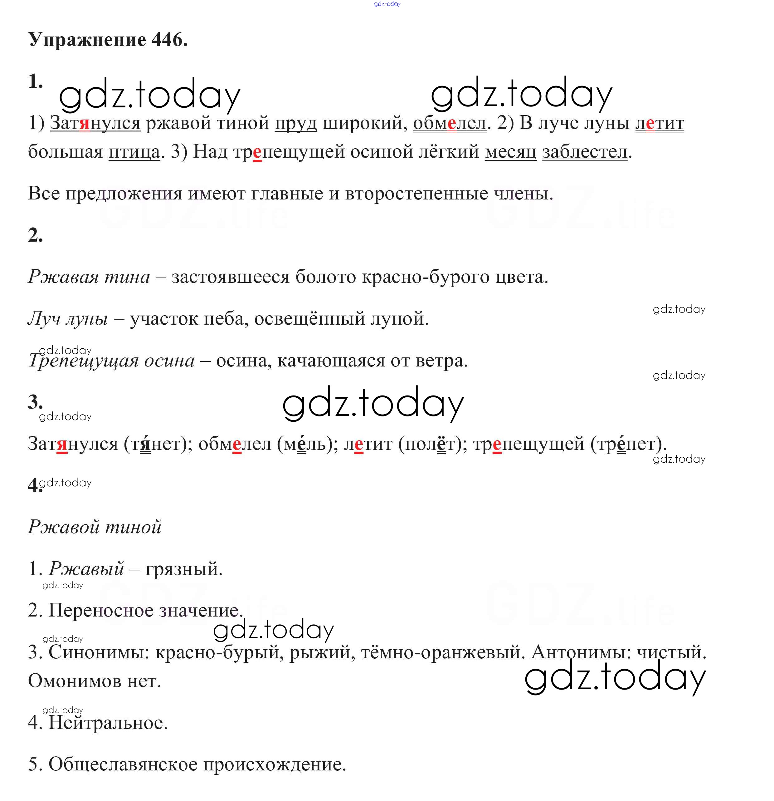 На страницах сайта gdz.today вы найдете учебный и вспомогательный материал, направленный на улучшения знаний школьной программы. ГДЗ - онлайн мир знаний Упражнения (решение) 446 Учебнику по Русскому языку для 5 класса Разумовская, Львова Дрофа, Дрофа 2014, 2020