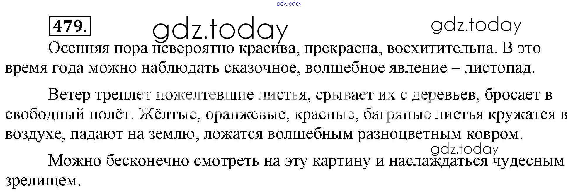 На страницах сайта gdz.today вы найдете учебный и вспомогательный материал, направленный на улучшения знаний школьной программы. ГДЗ - онлайн мир знаний Упражнения (решение) 479 Учебнику по Русскому языку для 5 класса Разумовская, Львова Дрофа, Дрофа 2014, 2020