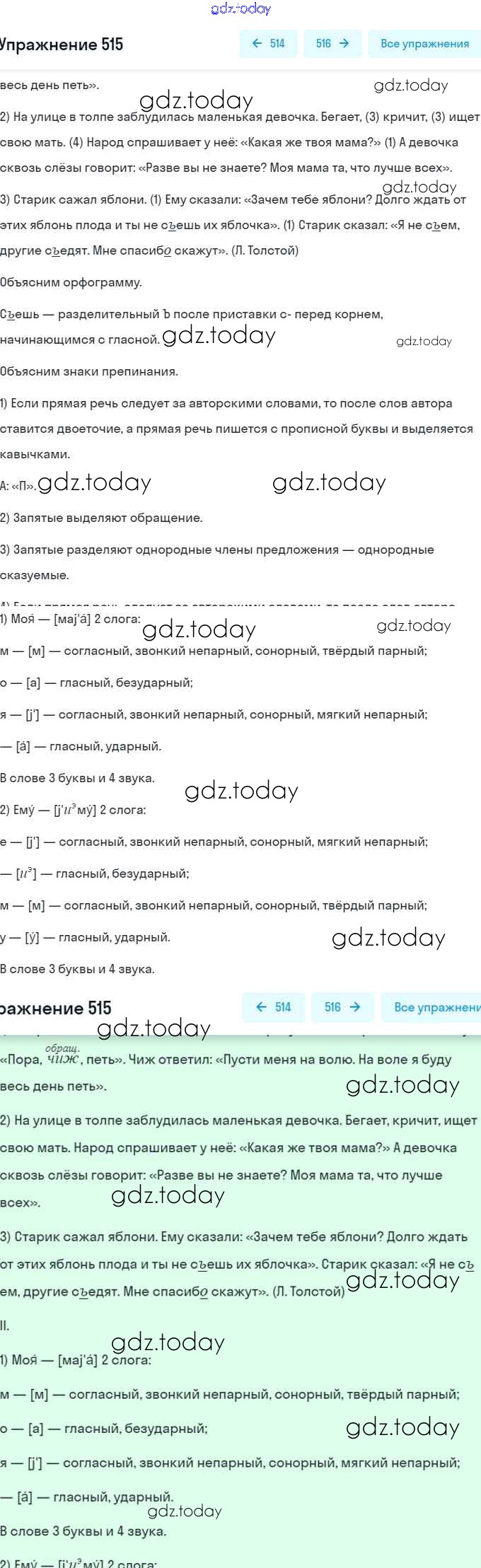 На страницах сайта gdz.today вы найдете учебный и вспомогательный материал, направленный на улучшения знаний школьной программы. ГДЗ - онлайн мир знаний Упражнения (решение) 515 Учебнику по Русскому языку для 5 класса Разумовская, Львова Дрофа, Дрофа 2014, 2020