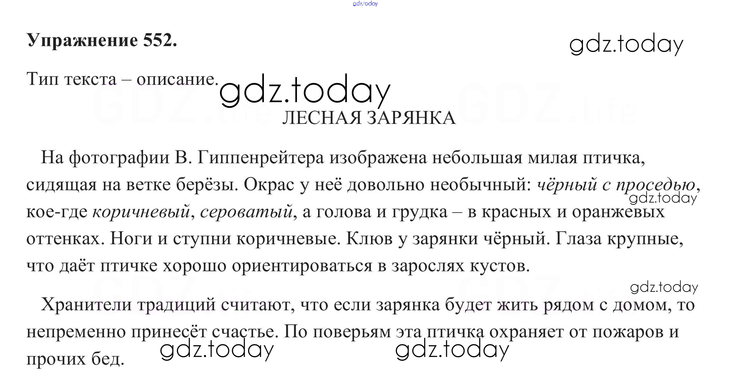 На страницах сайта gdz.today вы найдете учебный и вспомогательный материал, направленный на улучшения знаний школьной программы. ГДЗ - онлайн мир знаний Упражнения (решение) 552 Учебнику по Русскому языку для 5 класса Разумовская, Львова Дрофа, Дрофа 2014, 2020