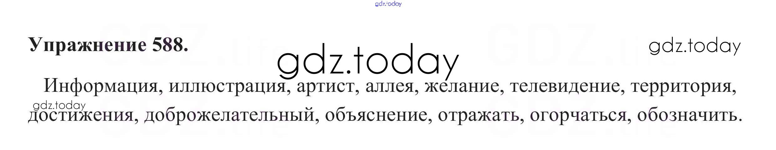 На страницах сайта gdz.today вы найдете учебный и вспомогательный материал, направленный на улучшения знаний школьной программы. ГДЗ - онлайн мир знаний Упражнения (решение) 588 Учебнику по Русскому языку для 5 класса Разумовская, Львова Дрофа, Дрофа 2014, 2020