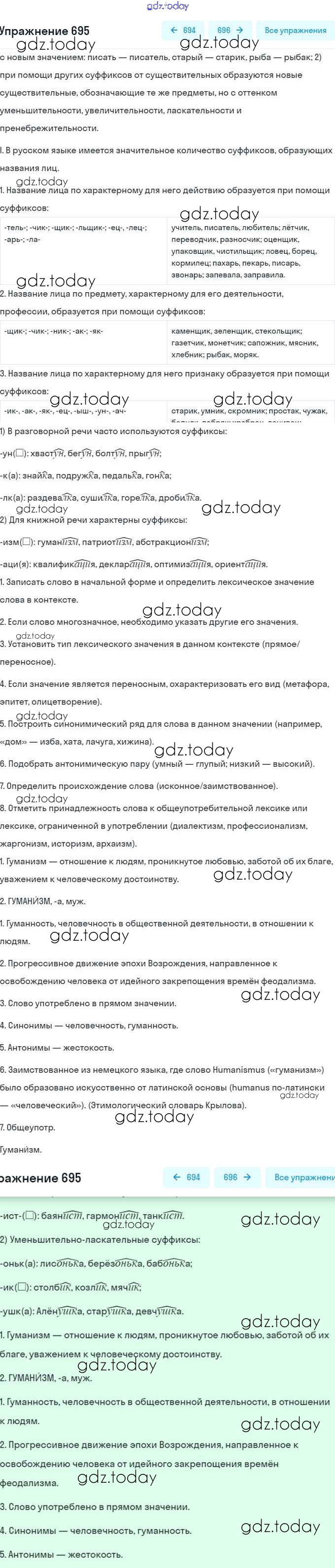 Ответы к Упражнения (решение) 695 Учебнику по Русскому языку для 5 класса Разумовская, Львова Дрофа, Дрофа 2014, 2020