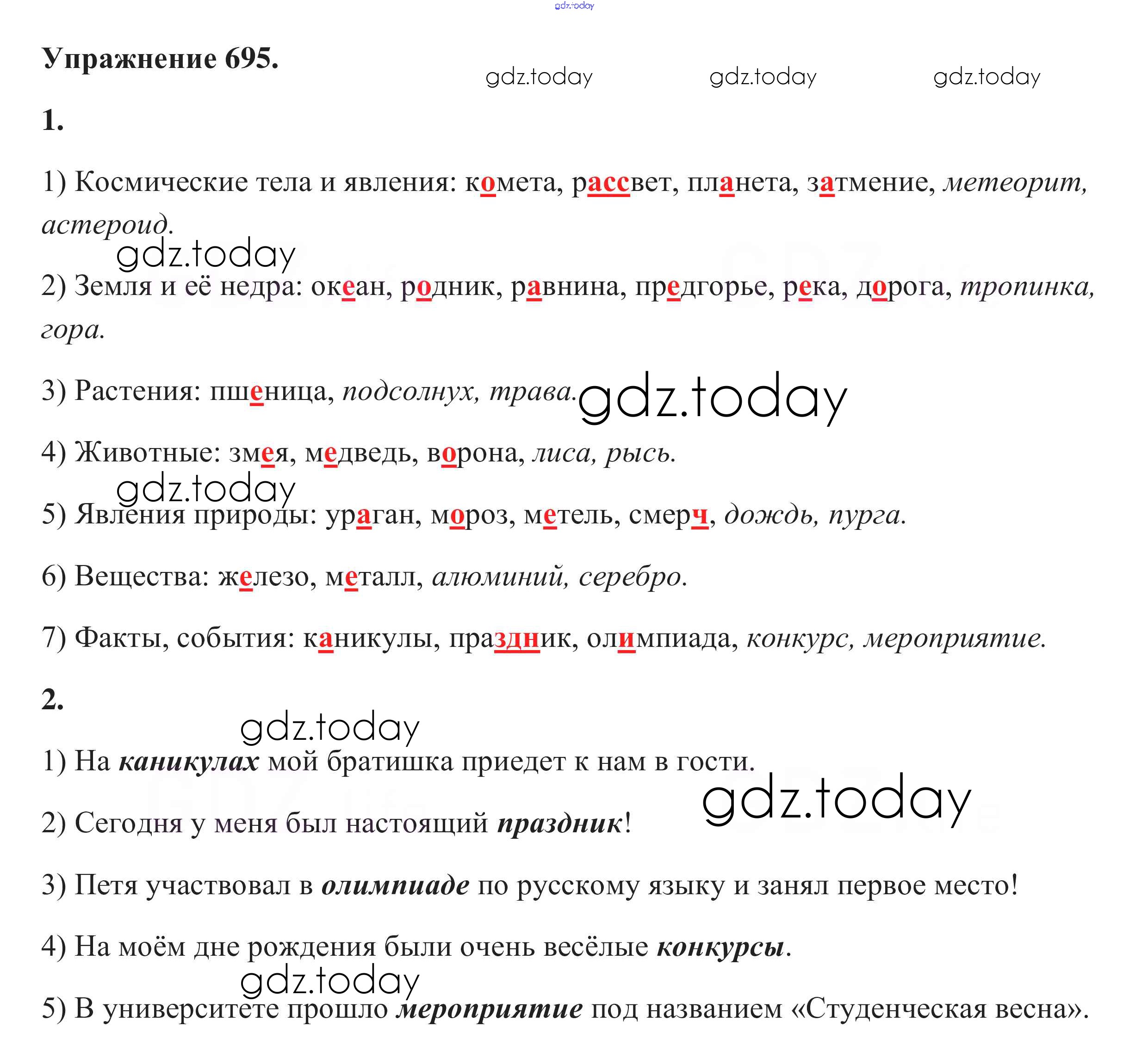 На страницах сайта gdz.today вы найдете учебный и вспомогательный материал, направленный на улучшения знаний школьной программы. ГДЗ - онлайн мир знаний Упражнения (решение) 695 Учебнику по Русскому языку для 5 класса Разумовская, Львова Дрофа, Дрофа 2014, 2020