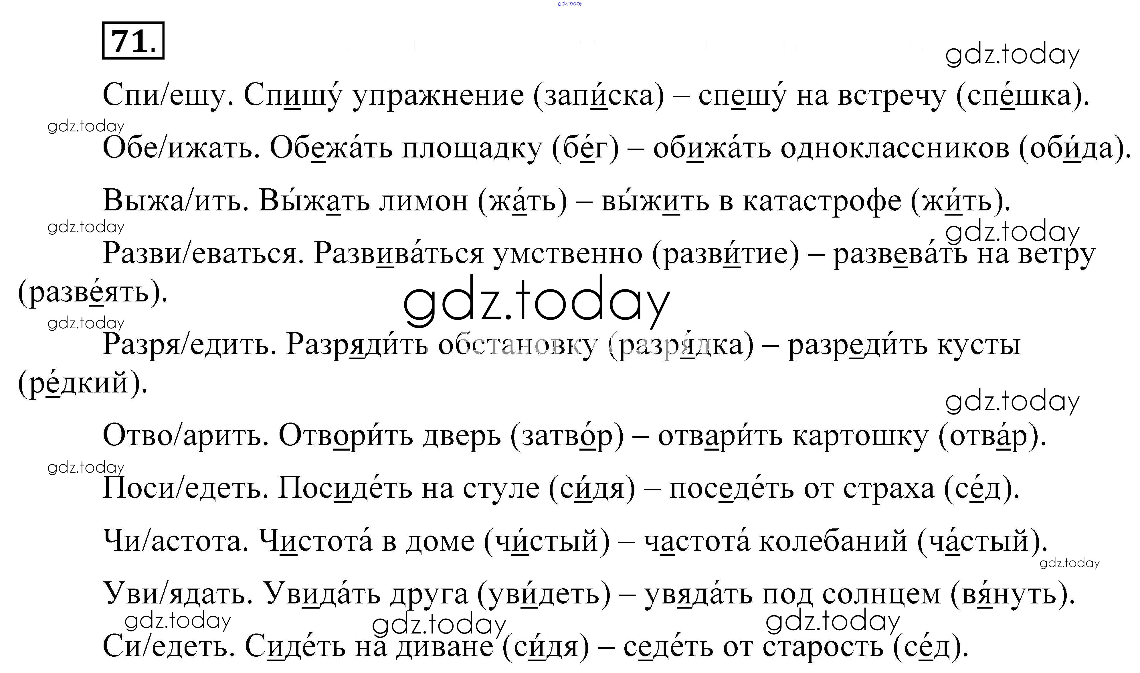 На страницах сайта gdz.today вы найдете учебный и вспомогательный материал, направленный на улучшения знаний школьной программы. ГДЗ - онлайн мир знаний Упражнения (решение) 71 Учебнику по Русскому языку для 5 класса Разумовская, Львова Дрофа, Дрофа 2014, 2020