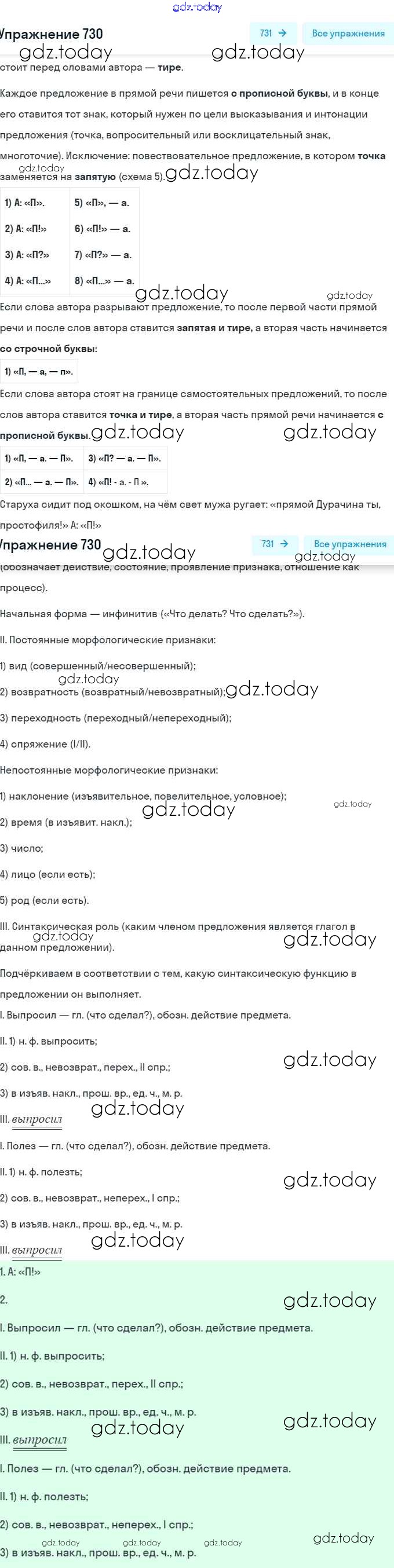 На страницах сайта gdz.today вы найдете учебный и вспомогательный материал, направленный на улучшения знаний школьной программы. ГДЗ - онлайн мир знаний Упражнения (решение) 730 Учебнику по Русскому языку для 5 класса Разумовская, Львова Дрофа, Дрофа 2014, 2020