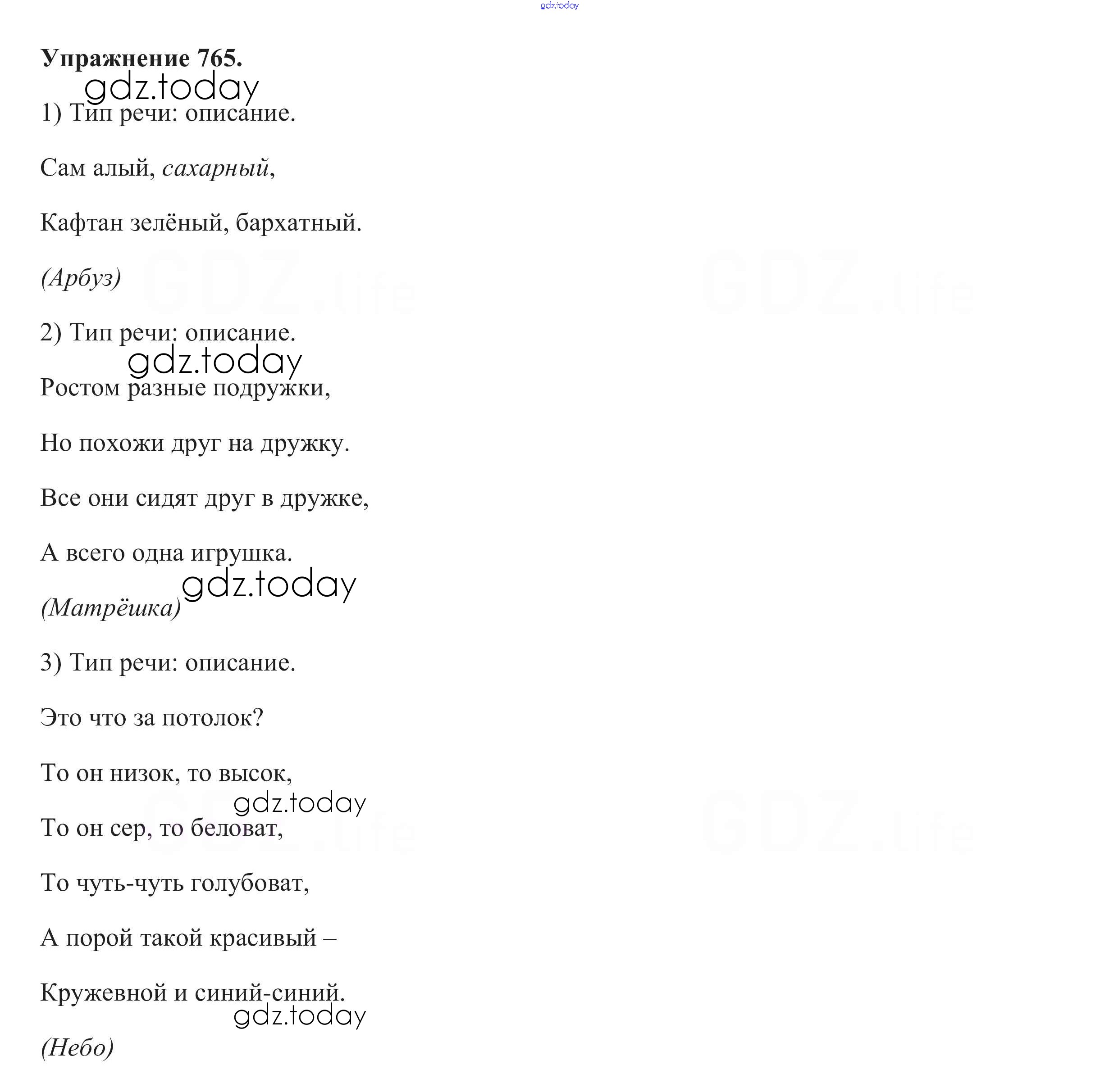 На страницах сайта gdz.today вы найдете учебный и вспомогательный материал, направленный на улучшения знаний школьной программы. ГДЗ - онлайн мир знаний Упражнения (решение) 765 Учебнику по Русскому языку для 5 класса Разумовская, Львова Дрофа, Дрофа 2014, 2020