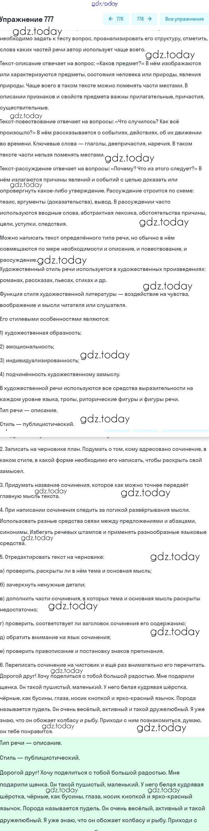 На страницах сайта gdz.today вы найдете учебный и вспомогательный материал, направленный на улучшения знаний школьной программы. ГДЗ - онлайн мир знаний Упражнения (решение) 777 Учебнику по Русскому языку для 5 класса Разумовская, Львова Дрофа, Дрофа 2014, 2020