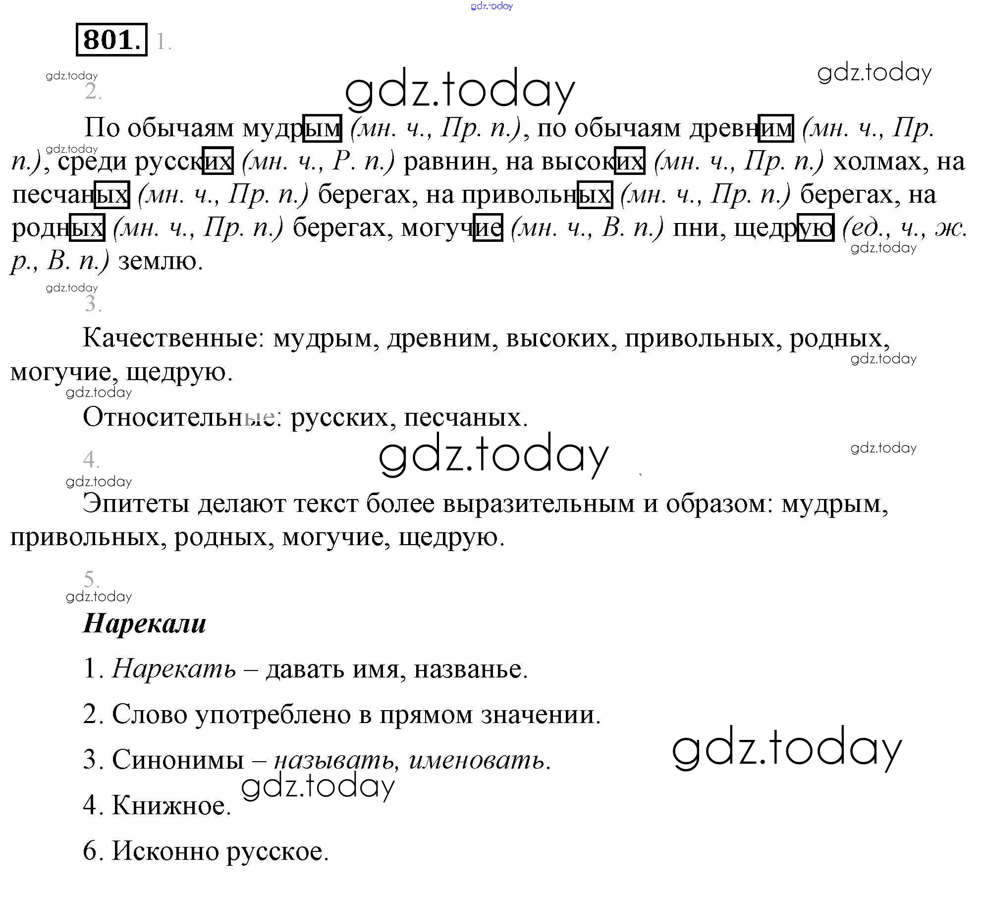 На страницах сайта gdz.today вы найдете учебный и вспомогательный материал, направленный на улучшения знаний школьной программы. ГДЗ - онлайн мир знаний Упражнения (решение) 801 Учебнику по Русскому языку для 5 класса Разумовская, Львова Дрофа, Дрофа 2014, 2020
