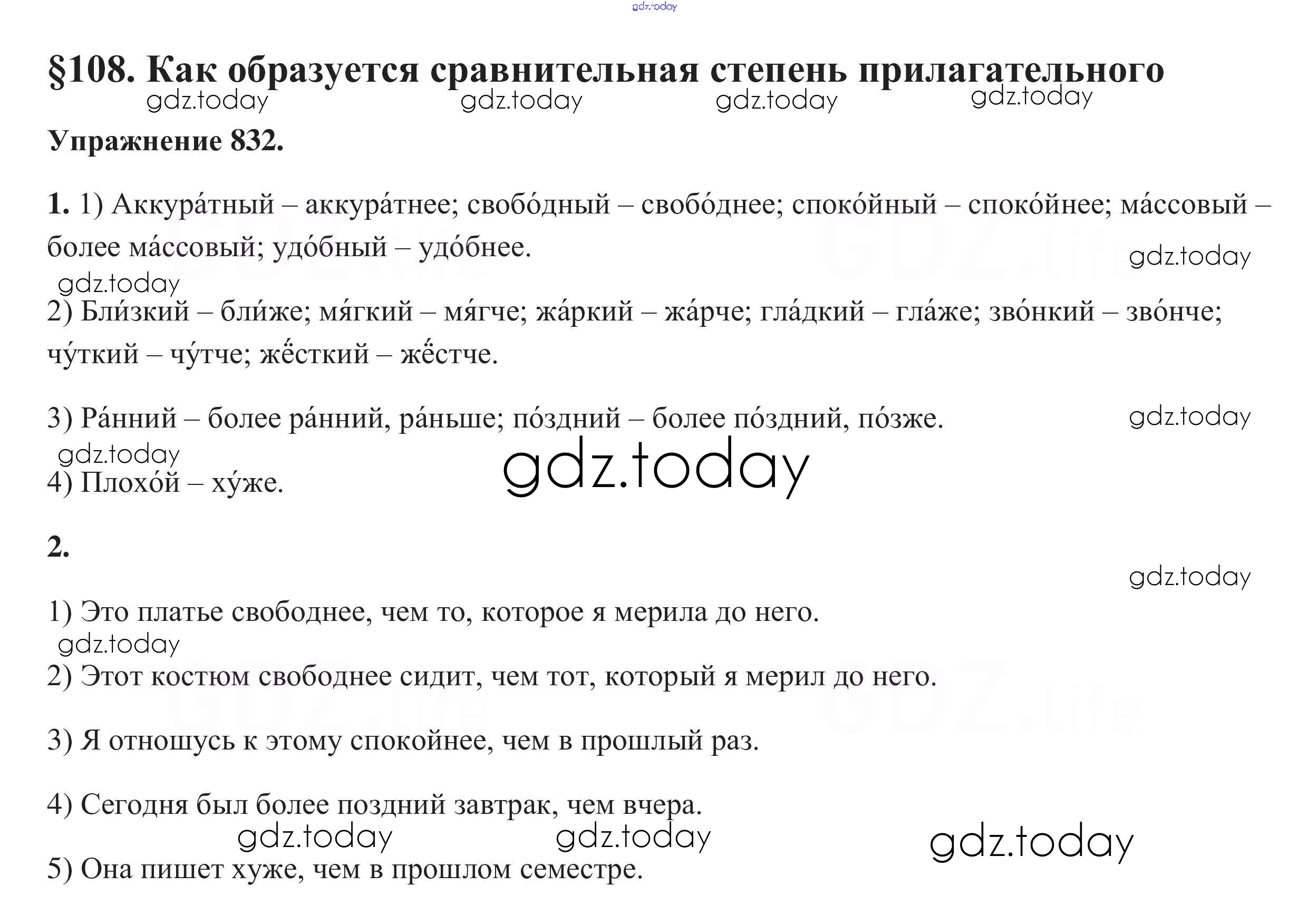 На страницах сайта gdz.today вы найдете учебный и вспомогательный материал, направленный на улучшения знаний школьной программы. ГДЗ - онлайн мир знаний Упражнения (решение) 832 Учебнику по Русскому языку для 5 класса Разумовская, Львова Дрофа, Дрофа 2014, 2020
