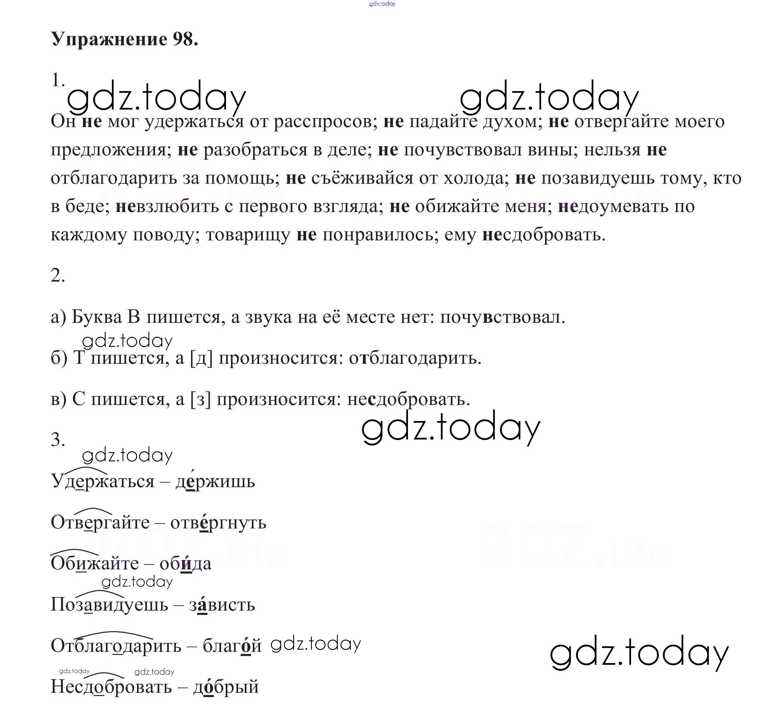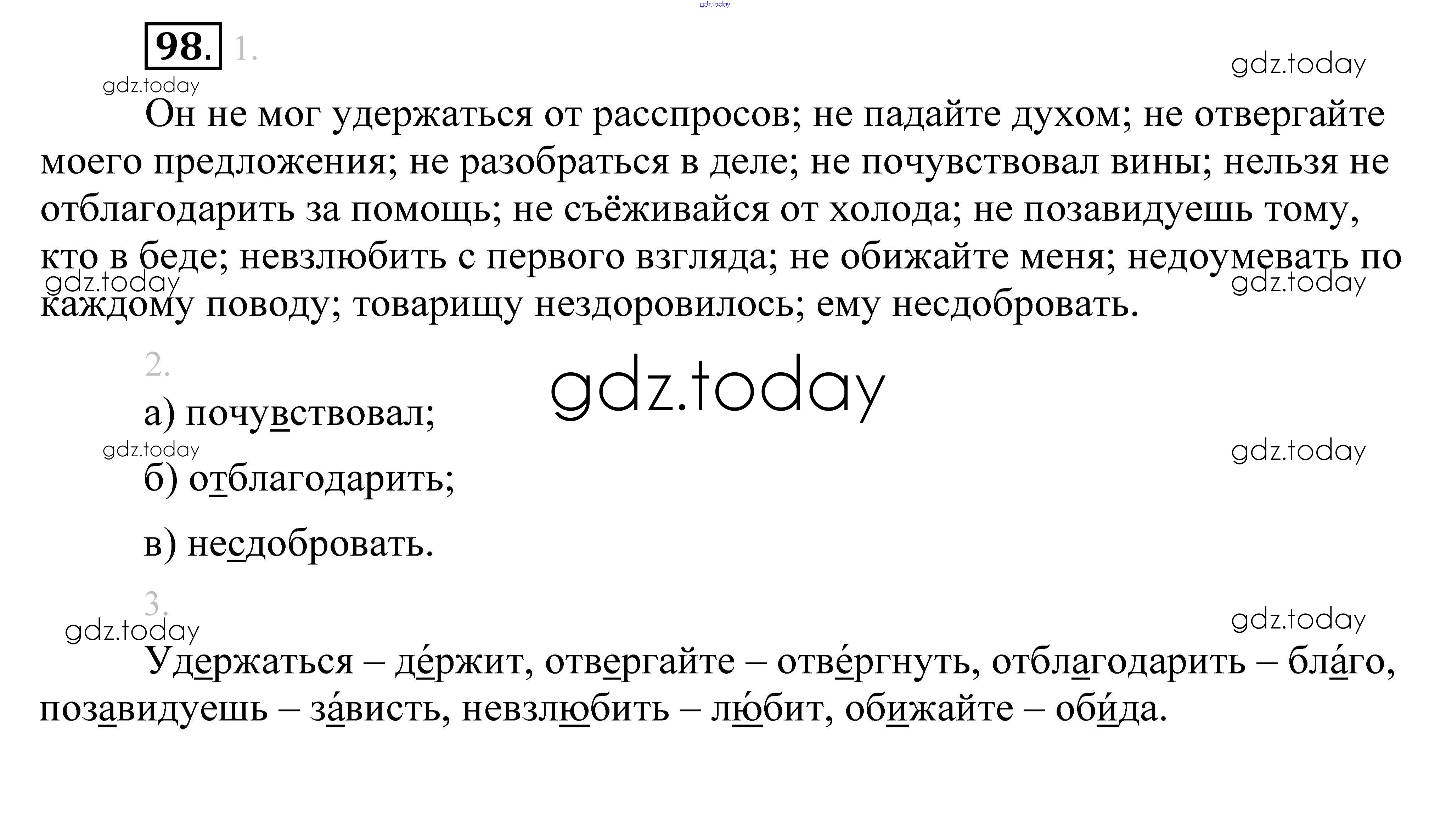 На страницах сайта gdz.today вы найдете учебный и вспомогательный материал, направленный на улучшения знаний школьной программы. ГДЗ - онлайн мир знаний Упражнения (решение) 98 Учебнику по Русскому языку для 5 класса Разумовская, Львова Дрофа, Дрофа 2014, 2020