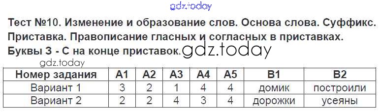 Ответы к Решение к тестам 10 Контрольно-измерительным материалам (КИМ) по Русскому языку для 5 класса Селезнева Экзамен 2014
