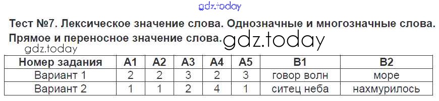 Ответы к Решение к тестам 7 Контрольно-измерительным материалам (КИМ) по Русскому языку для 5 класса Селезнева Экзамен 2014