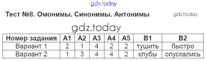 Ответы к Решение к тестам 8 Контрольно-измерительным материалам (КИМ) по Русскому языку для 5 класса Селезнева Экзамен 2014
