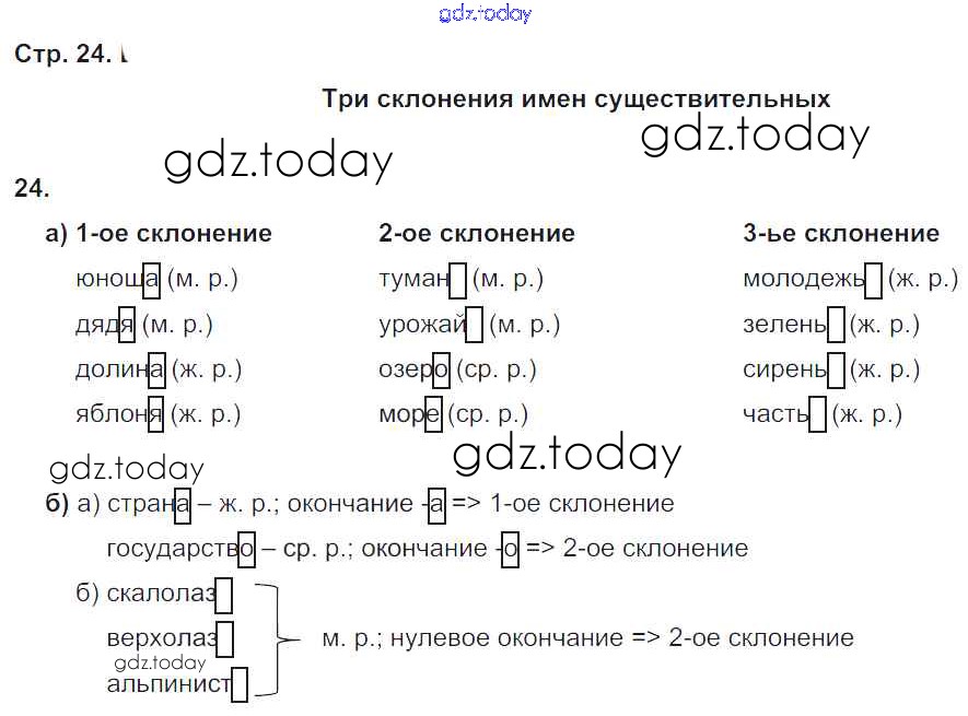 На страницах сайта gdz.today вы найдете учебный и вспомогательный материал, направленный на улучшения знаний школьной программы. ГДЗ - онлайн мир знаний Страницы (решение) 24 Рабочей тетради по Русскому языку для 5 класса Тростенцова, Дейкина Экзамен УМК 2015