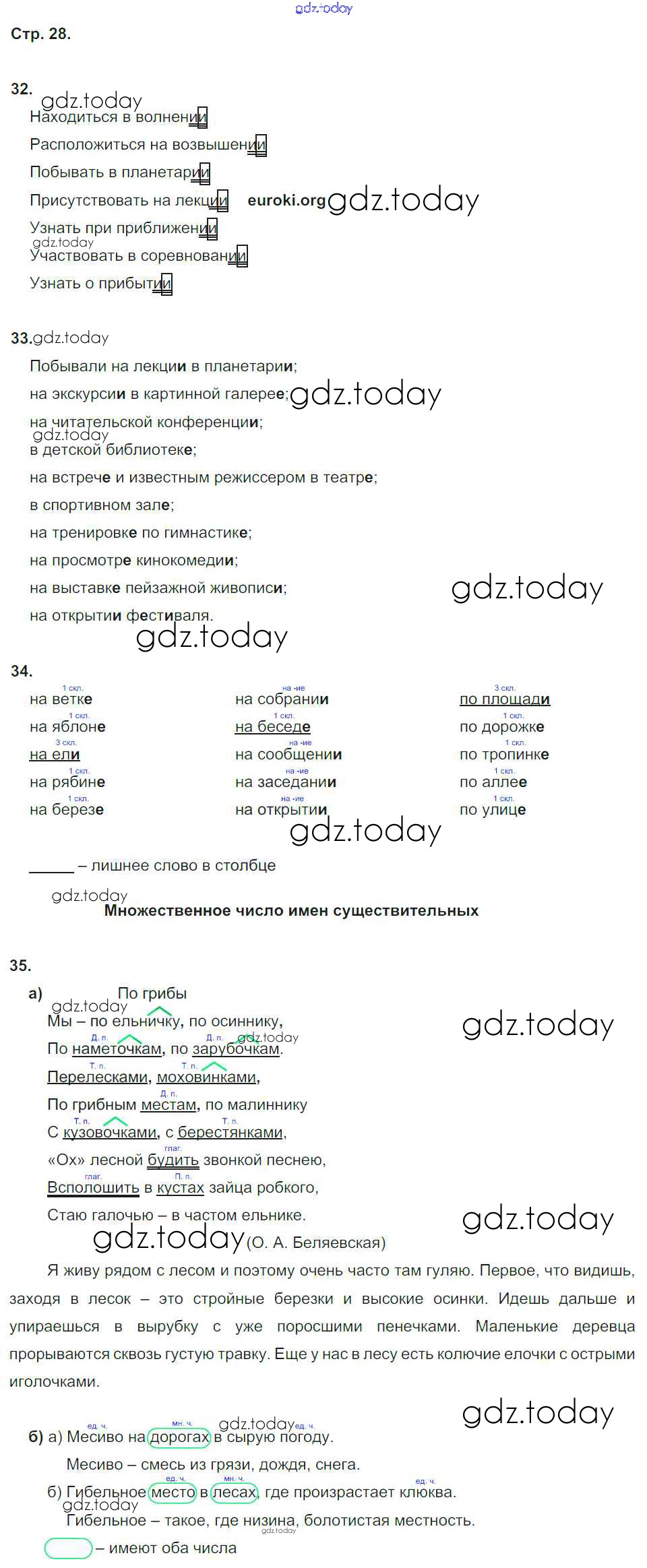 Ответы к Страницы (решение) 28 Рабочей тетради по Русскому языку для 5 класса Тростенцова, Дейкина Экзамен УМК 2015
