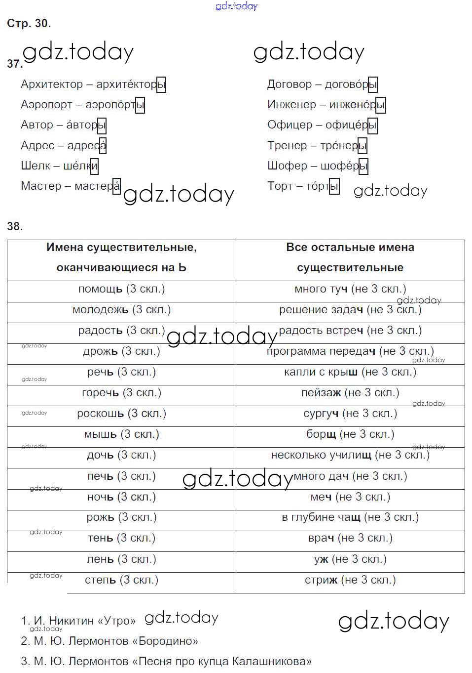 Ответы к Страницы (решение) 30 Рабочей тетради по Русскому языку для 5 класса Тростенцова, Дейкина Экзамен УМК 2015