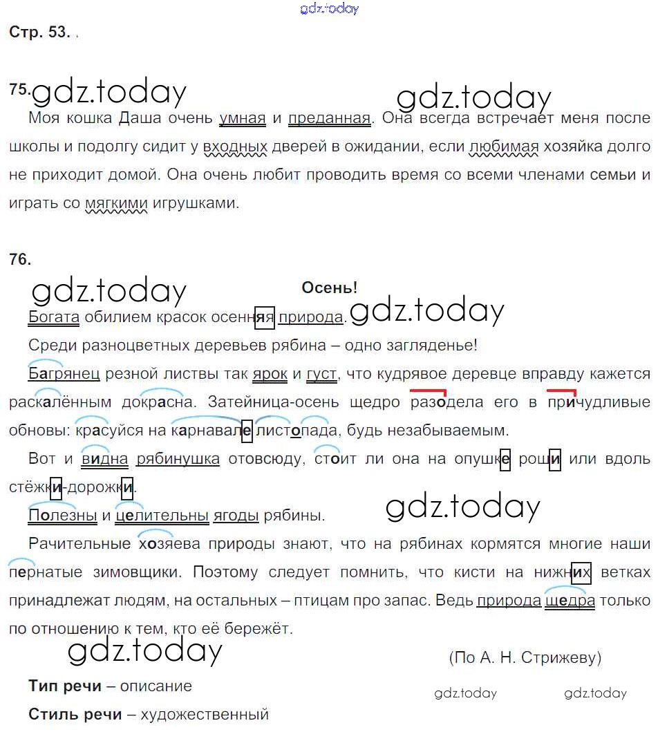Ответы к Страницы (решение) 53 Рабочей тетради по Русскому языку для 5 класса Тростенцова, Дейкина Экзамен УМК 2015