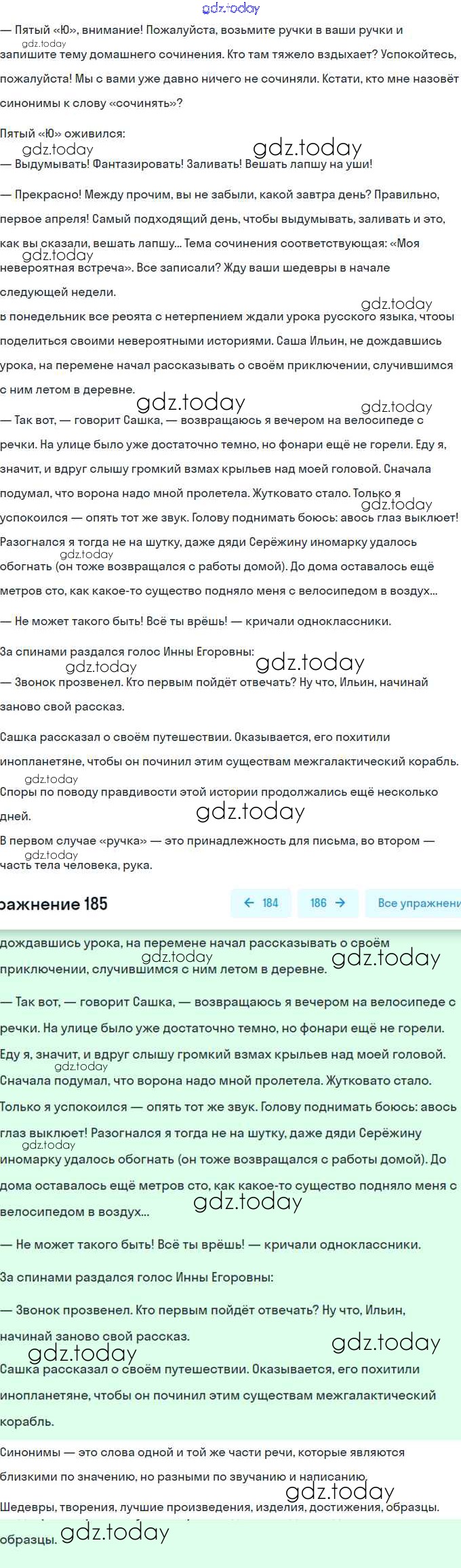 На страницах сайта gdz.today вы найдете учебный и вспомогательный материал, направленный на улучшения знаний школьной программы. ГДЗ - онлайн мир знаний Решение. Часть 1 185 Учебнику по Русскому языку для 5 класса Рыбченкова, Александрова Просвещение 2019