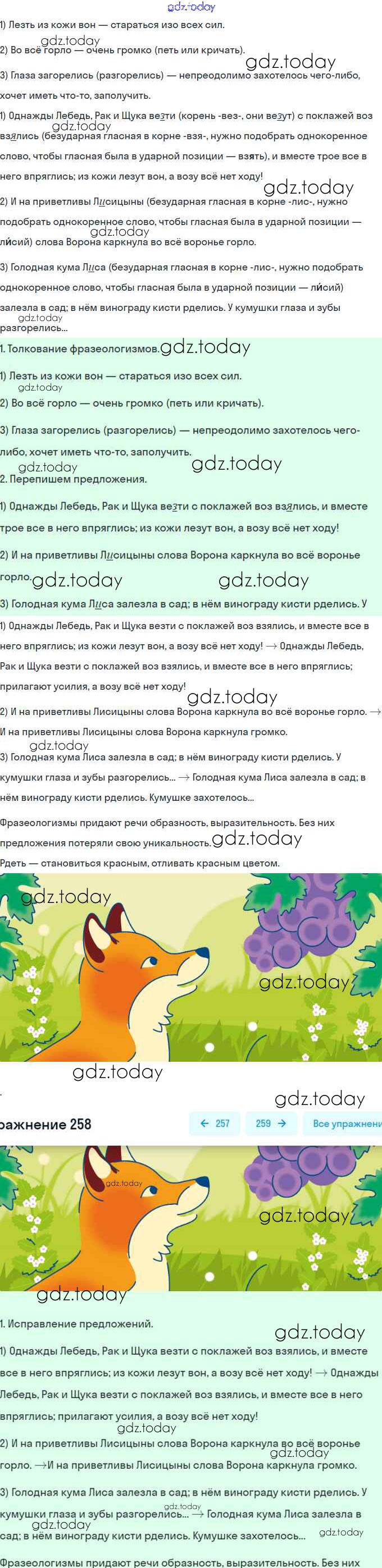 На страницах сайта gdz.today вы найдете учебный и вспомогательный материал, направленный на улучшения знаний школьной программы. ГДЗ - онлайн мир знаний Решение. Часть 1 258 Учебнику по Русскому языку для 5 класса Рыбченкова, Александрова Просвещение 2019