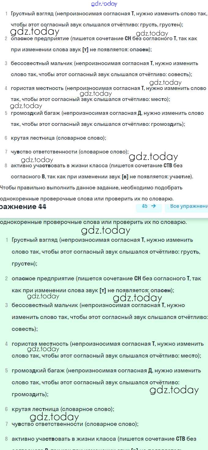 На страницах сайта gdz.today вы найдете учебный и вспомогательный материал, направленный на улучшения знаний школьной программы. ГДЗ - онлайн мир знаний Решение. Часть 1 44 Учебнику по Русскому языку для 5 класса Рыбченкова, Александрова Просвещение 2019